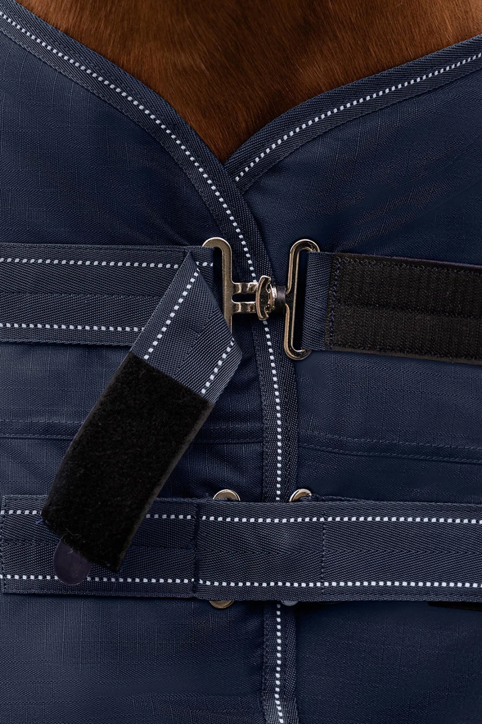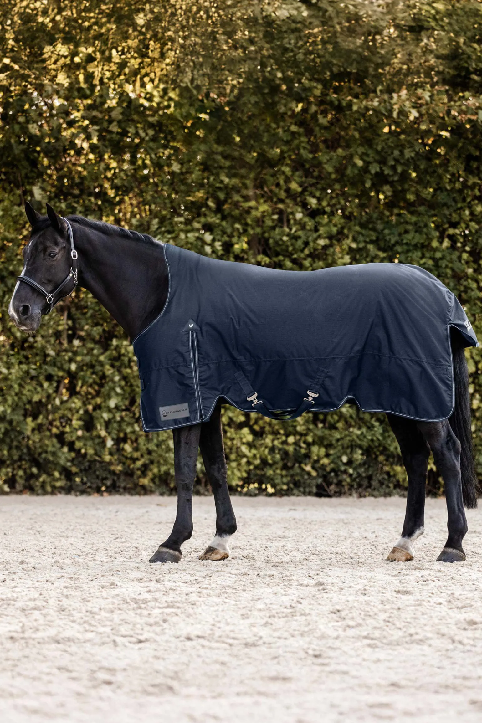 Med Waldhausen Arctic utedekken kan du være trygg på at hesten din er optimalt beskyttet, selv under utfordrende forhold. Det antibakterielle innerforet sikrer maksimal komfort. De doble T-frontlukningene gir en sikker passform og forhindrer at dekkenet sklir. Kantbåndet med reflekterende detaljer forbedrer synligheten i dårlig lys. Den generøse bevegelsesfolden gir ubegrenset bevegelsesfrihet, mens kryssgjordene gir ekstra stabilitet. Yttermaterialet på 600 denier gir en slitesterk barriere mot vind og vær. Arctic utedekken med høy hals forhindrer gnagsår på manken og mankekammen. Stay Clean Inlay: Si farvel til hestehår på dekken som kun er prøvd én gang. Waldhausen Stay Clean Inlay er en praktisk og innovativ løsning for å prøve dekken på hester hygienisk og enkelt, uten at de blir skitne eller fulle av hår. Innlegget er direkte integrert i de nye Waldhausen utedekkene og er festet til innsiden av dekkenet. Dette forhindrer direkte kontakt mellom hestens rygg og dekkenet. Resultatet er at dekkenet forblir rent, selv om det bare brukes én gang til prøving. Det er viktig å merke seg at innlegget ikke er beregnet for permanent bruk, men kun til kortvarig prøving. Stay Clean Inlay kan enkelt fjernes ved forsiktig å dra det av.