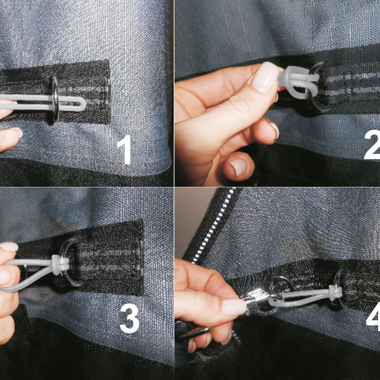 - Sett på seks i en pakke til ett dekken, fire for karabinkroker + to for T-spenner