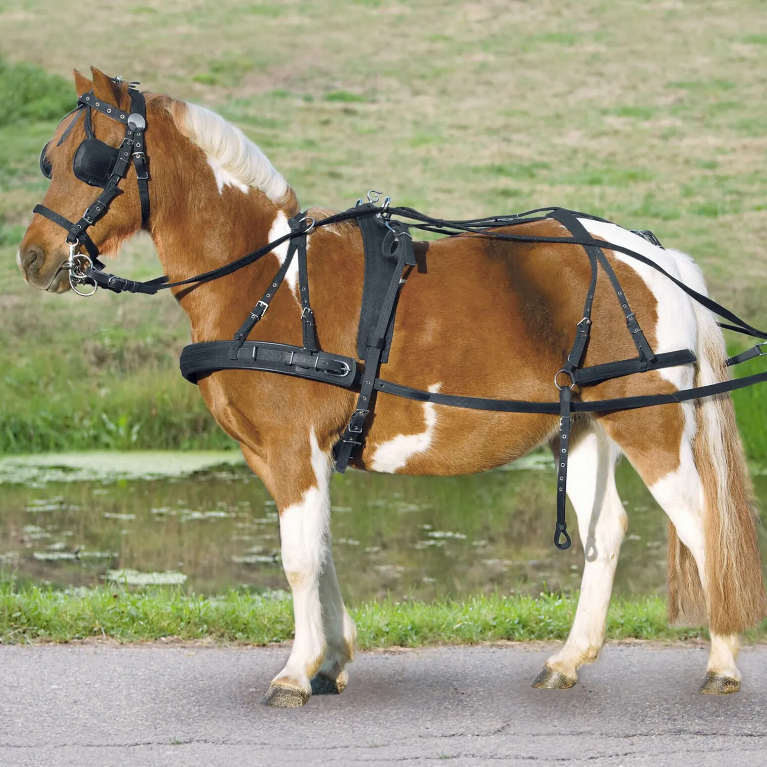 Robust brystsele laget av holdbart nylonmateriale, mykt polstret.Kommer med hodelag med skylapper, kjøretøyler, bryst, salett, trekkliner og halereim.InkludertSelepose.Se produktnummer 333346 for cob og full-størrelser.