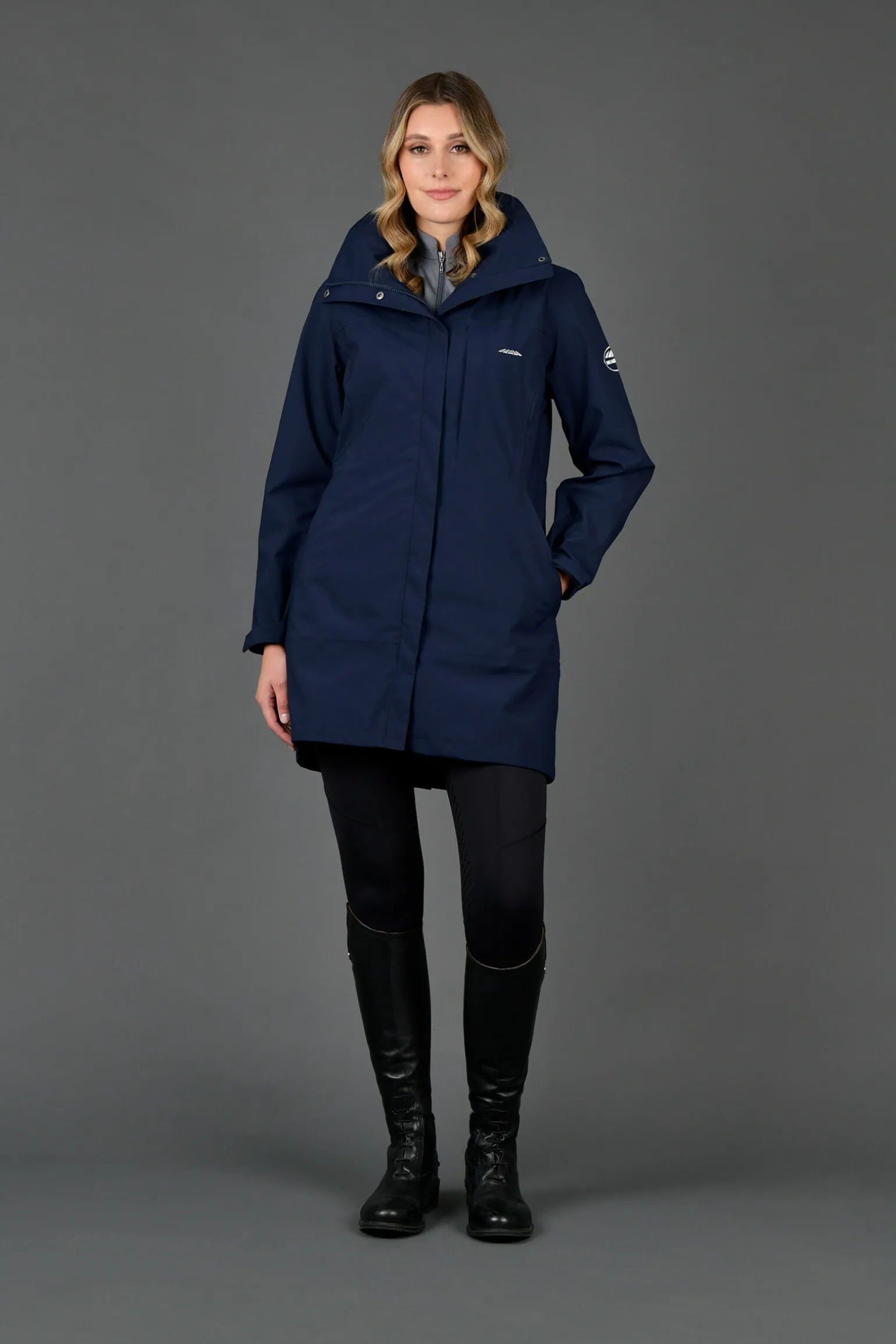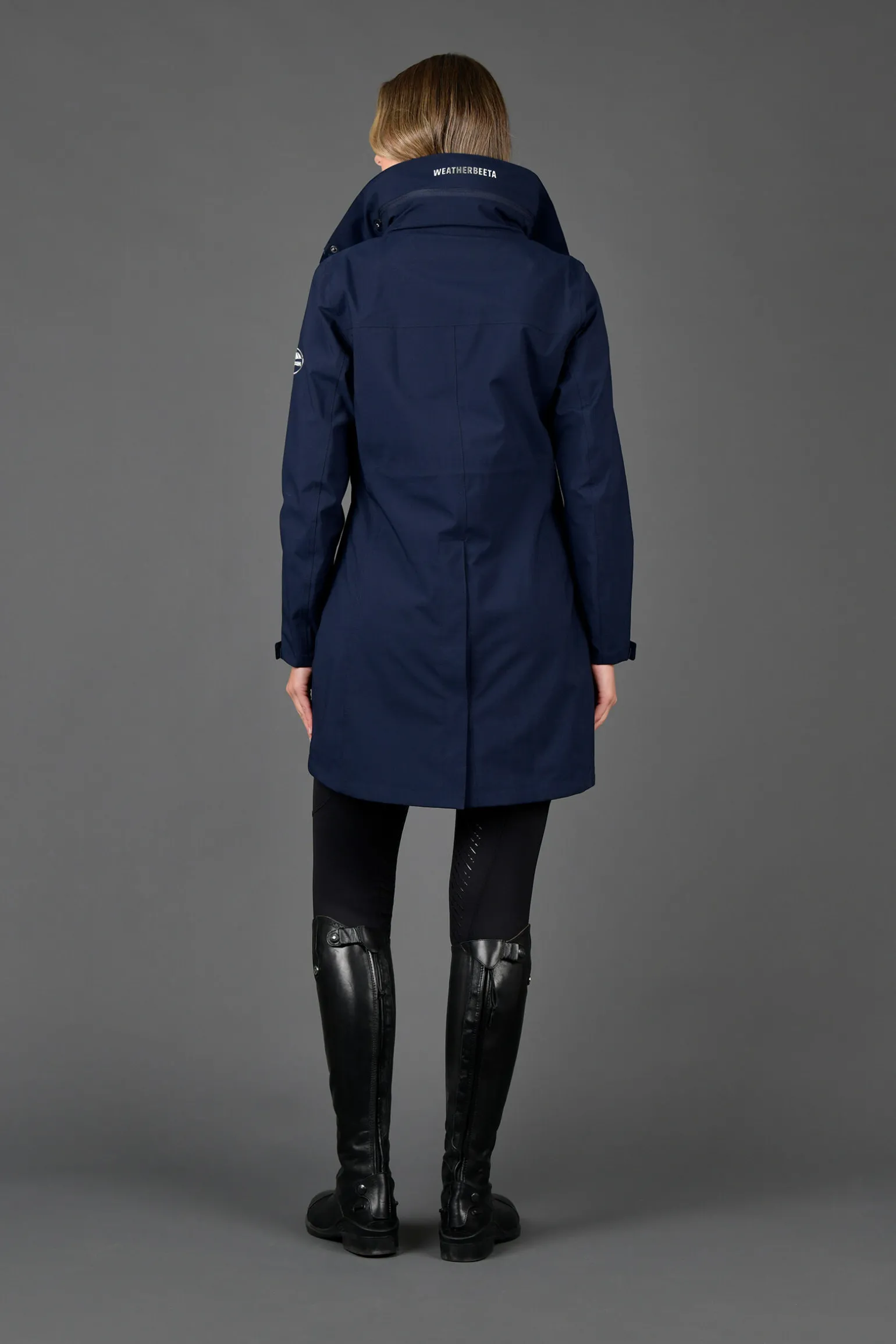WeatherBeeta Everly Jacket er en teknisk vanntett, vindtett og pustende jakke med forseglede sømmer for optimal beskyttelse Designet med en A-linjeform med bakkant for bevegelsesfrihet, dobbel avtrekker foran glidelås og trykknapper for å lukke. Glidelåsventilene under armene med teknisk mesh gir ventilasjon og komfort. Traktstativkrage med sammenfellbar hette gir beskyttelse mot elementene. Mansjettene har justerbare tapefliker med lengre bakkant perfekt for ridning.