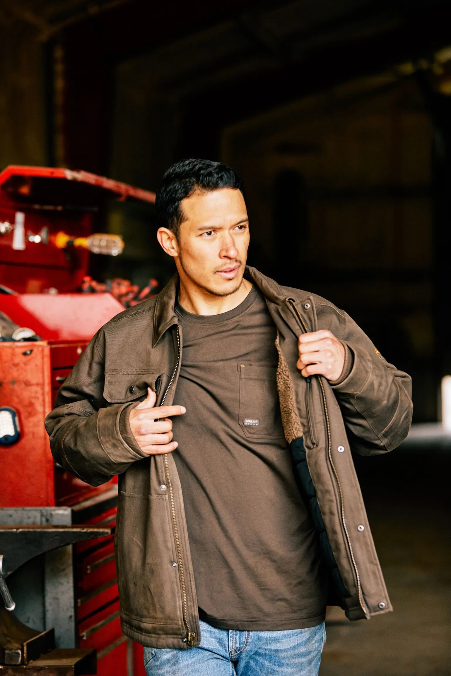 Tøff og robust uten stivhet eller at den klumper seg. Denne jakken gir mye varme, uten å være tung.Den er smart fôret gjennom hele, med sherpa-fôr på overkroppen for et ekstra lag varme der du trenger det mest.