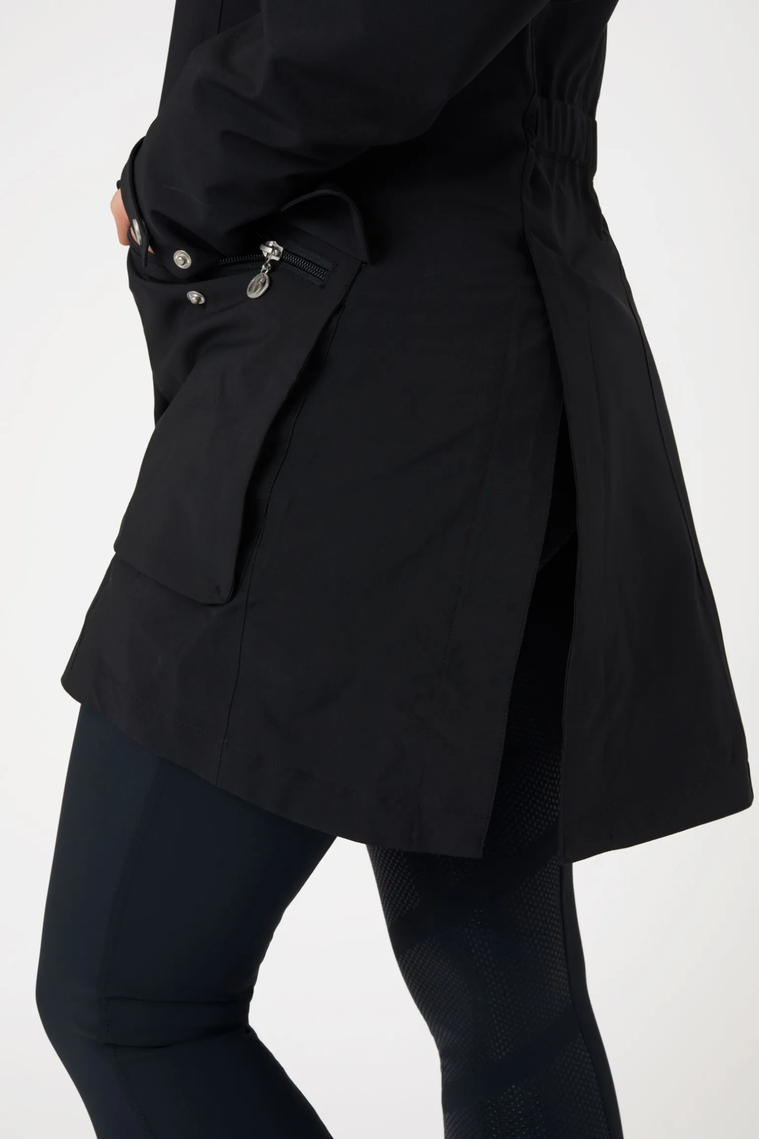 B Vertigo Caroline vanntett jakke beskytter deg perfekt mot regn og vind.Den lange passformen gir varme uten at den forhindrer bevegelsene dine eller ødelegger salen, takket være to splitter bak med magnetiske knapper.Store glidelåslommer med trykknapper holder eiendelene dine trygge.Hetten kan enkelt tas av med en glidelås.Elastiske mansjetter på innsiden av ermene er ekstra komfortable.Elastisk drasnor i livet gir en flatterende form.Bruk den med vår B Vertigo Caroline fleecevest for ekstra varme.