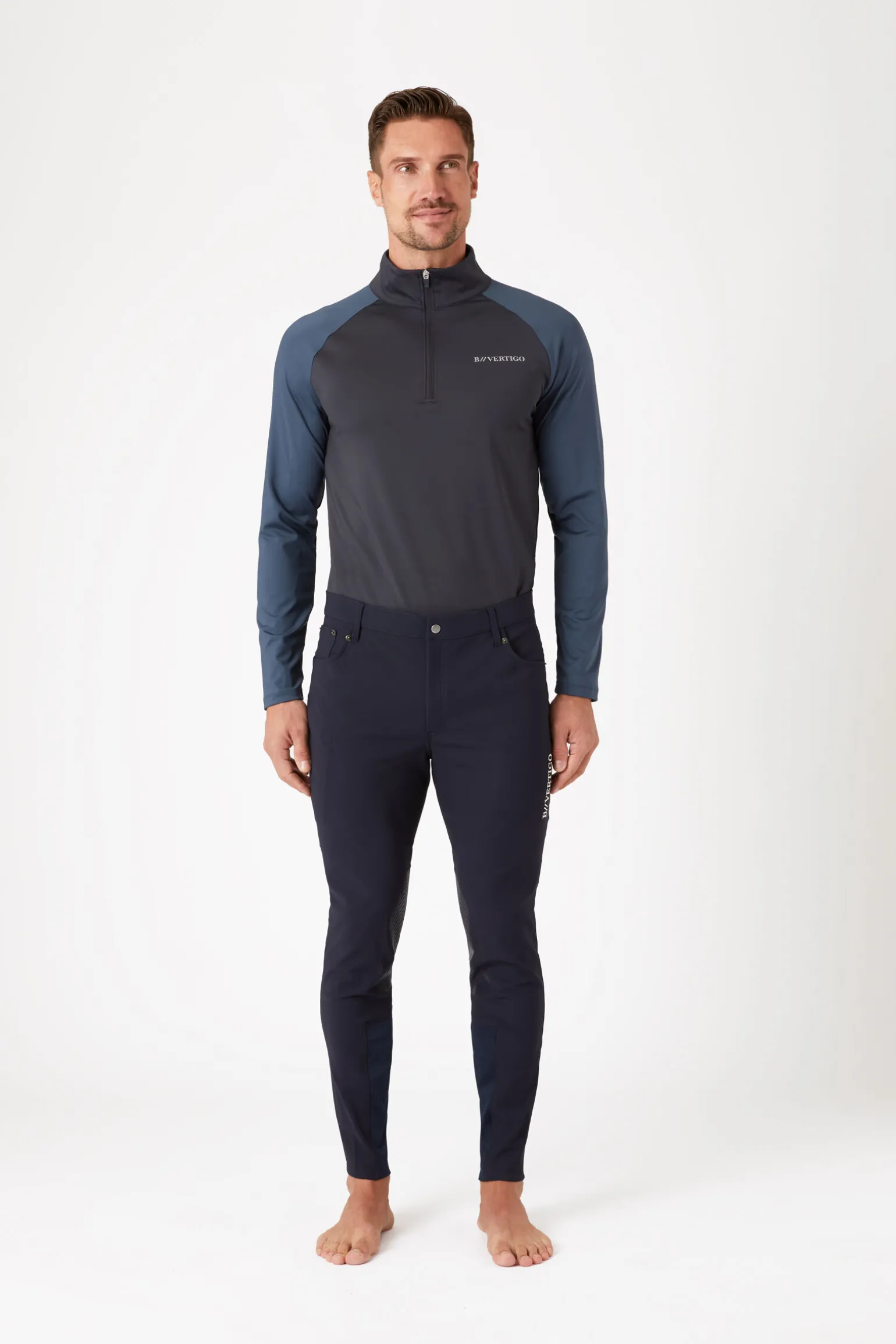 Vår B Vertigo Ethan ridebukser til herre er laget av et funksjonelt stoff, og kommer med silikon på kneforsterkingen.Totalt har du seks lommer som holder eiendelene dine trygge.Den store lommen på låret har glidelås og er romslig nok til telefonen din.Klassisk form og farger som er lette å bruke med dine beste skjorter og gensere.Kommer også som helforsterket ridebukse.
