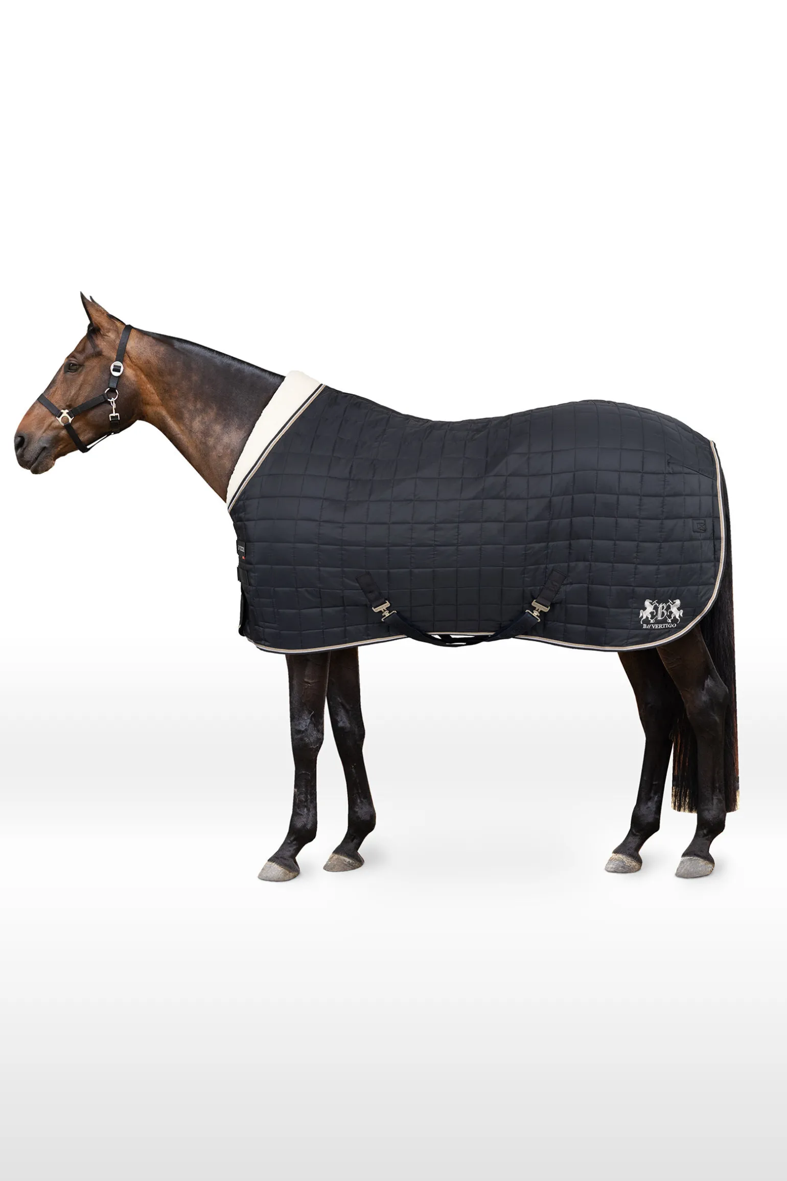 B Vertigo Theo dekken med myk krage i fuskepels ser ikke bare elegant ut, det er også funksjonelt og varmt.Fyllet holder kulden i stallen borte.To frontspenner, kryssgjorder og halesnor holder dekkenet på plass.Den pent broderte logoen gir et elegant preg.