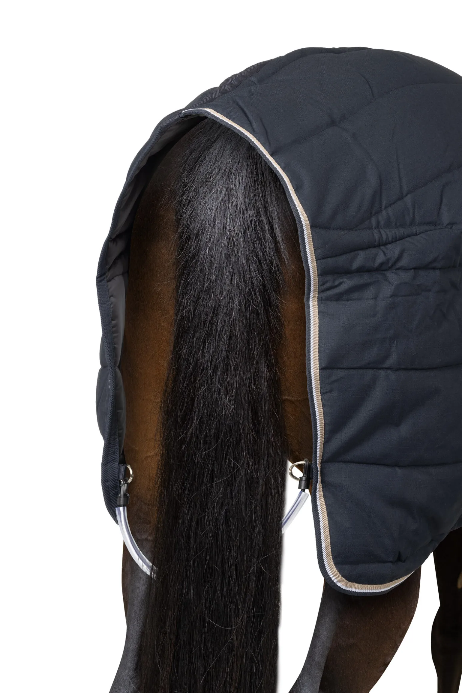 Myk, luksuriøs, luftig fyll gir dette varme stalldekkenet en putelignende effekt. Hester holder seg varme og gode når de bruker dette elegante stalldekkenet hele vinteren gjennom. Utsiden er holdbar og vannavvisende slik at det beskytter mot fukt når hesten ligger ned. Fôret på innsiden er glatt og mykt, og vil ikke gnage på pelsen eller flytte på hår. En nydelig kant gir ekstra stil til dette perfekte valget av vinterpysjamas til din hest.