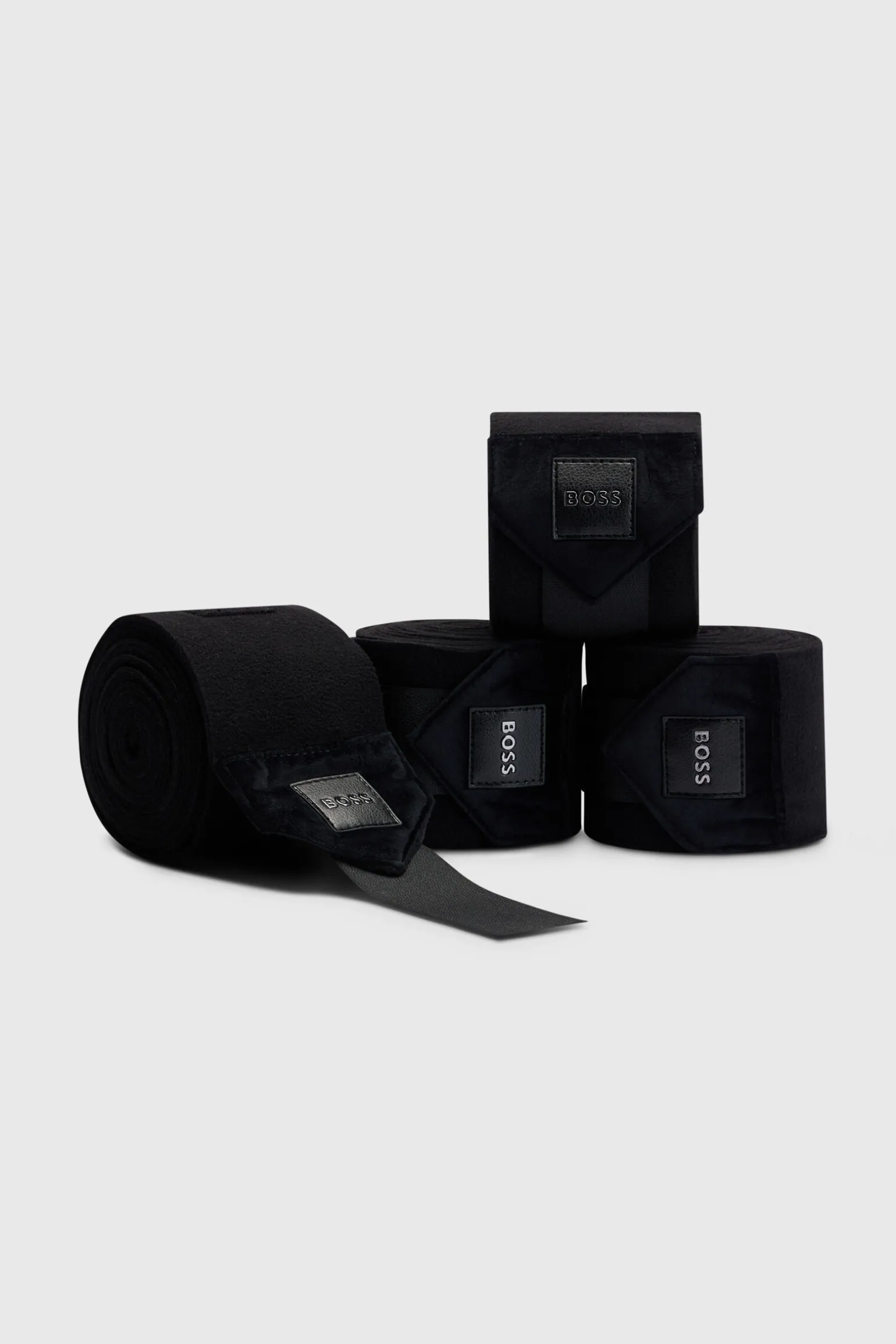Bandasjer laget av fleece med BOSS faux skinn logo patch og fløyelsender og borrelåsfeste.