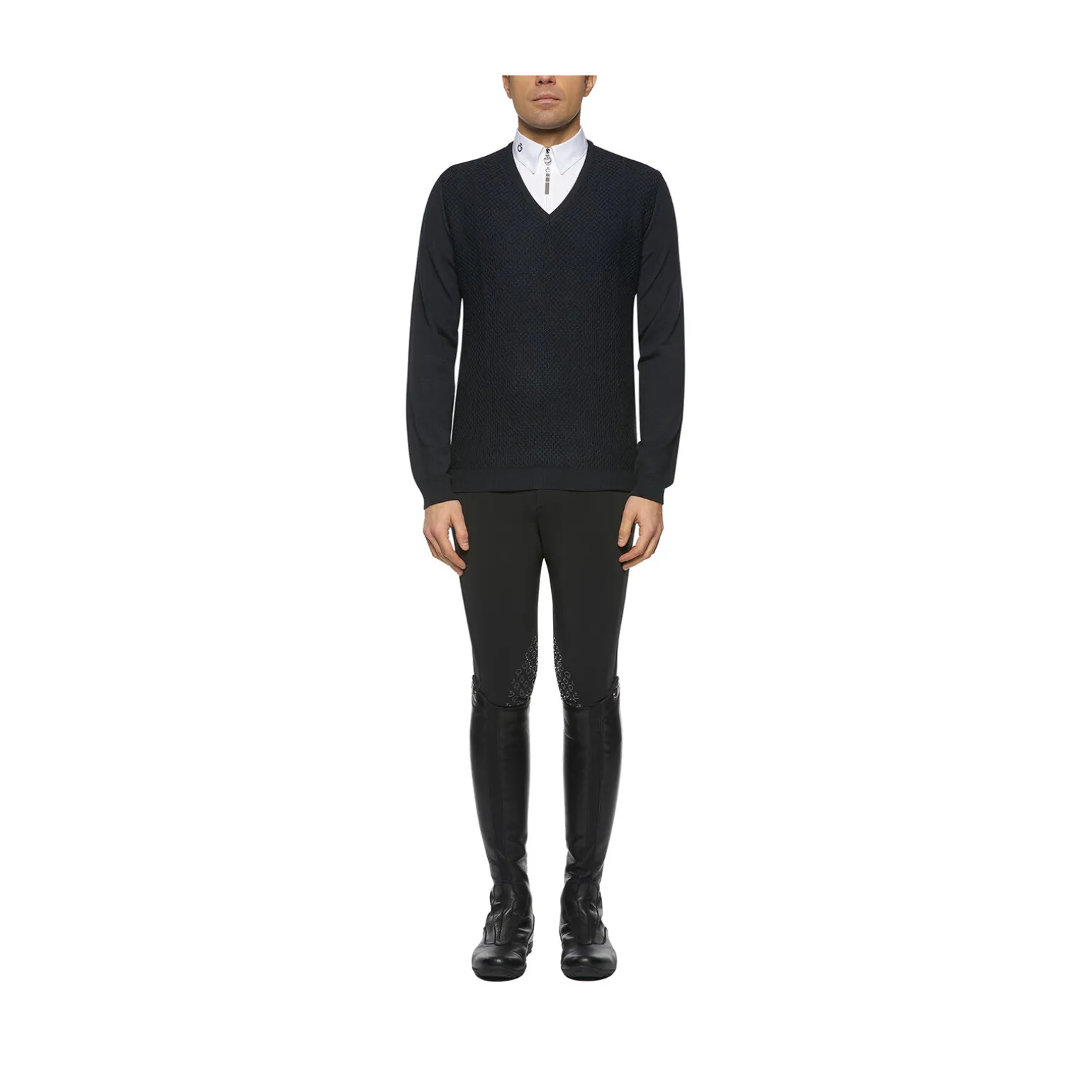 Denne herregenseren er laget av myk og varm ull, som er dekorert foran med bikubestruktur.Den høye kvaliteten på dette materialet passer perfekt til hverdagen eller til trening, og sørger for at kroppen holder en varm temperatur, selv på de kaldeste dager.Genseren kommer med V-hals og er dekorert med en brodert logo på skulderen.