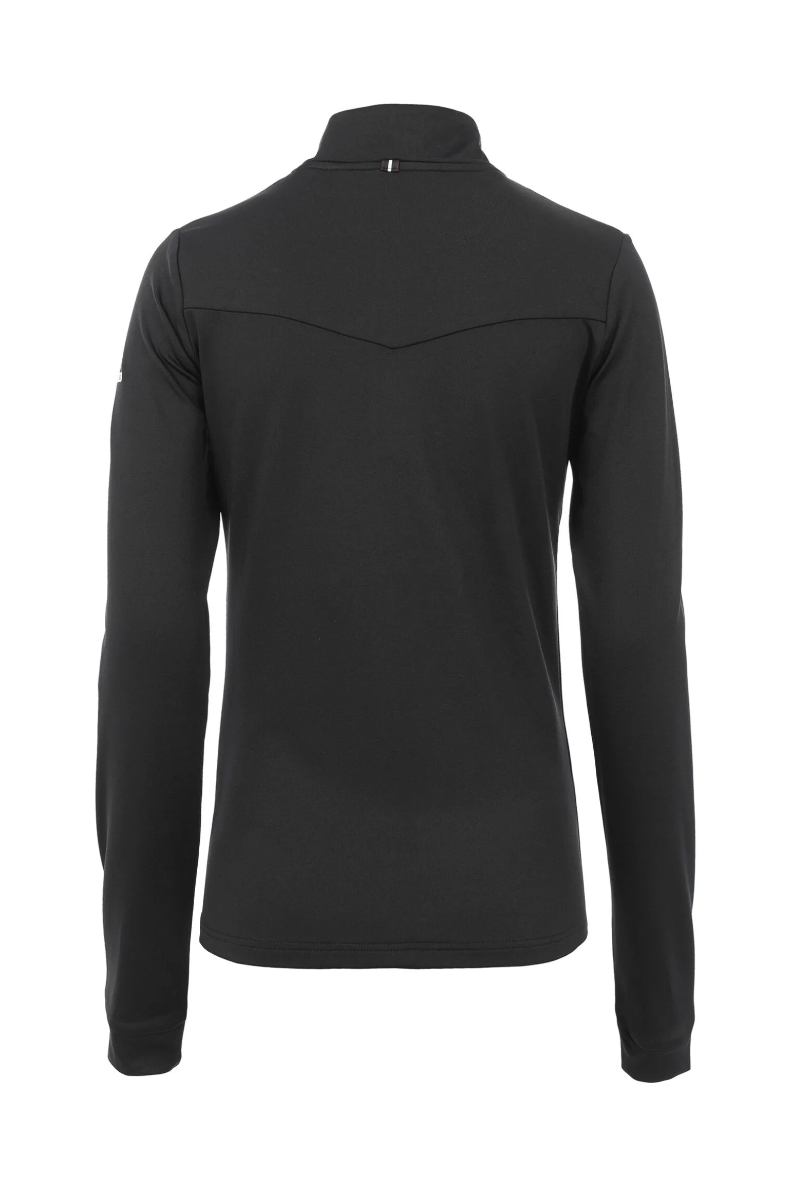 Made of bi-elastic functional material. Softly brushed inside for a comfortable feeling. Zip with jewelry pull with crystal on the collar. Silver artwork with crystals on the left upper arm. Silver artwork above the yoke on the front and along both side seams.