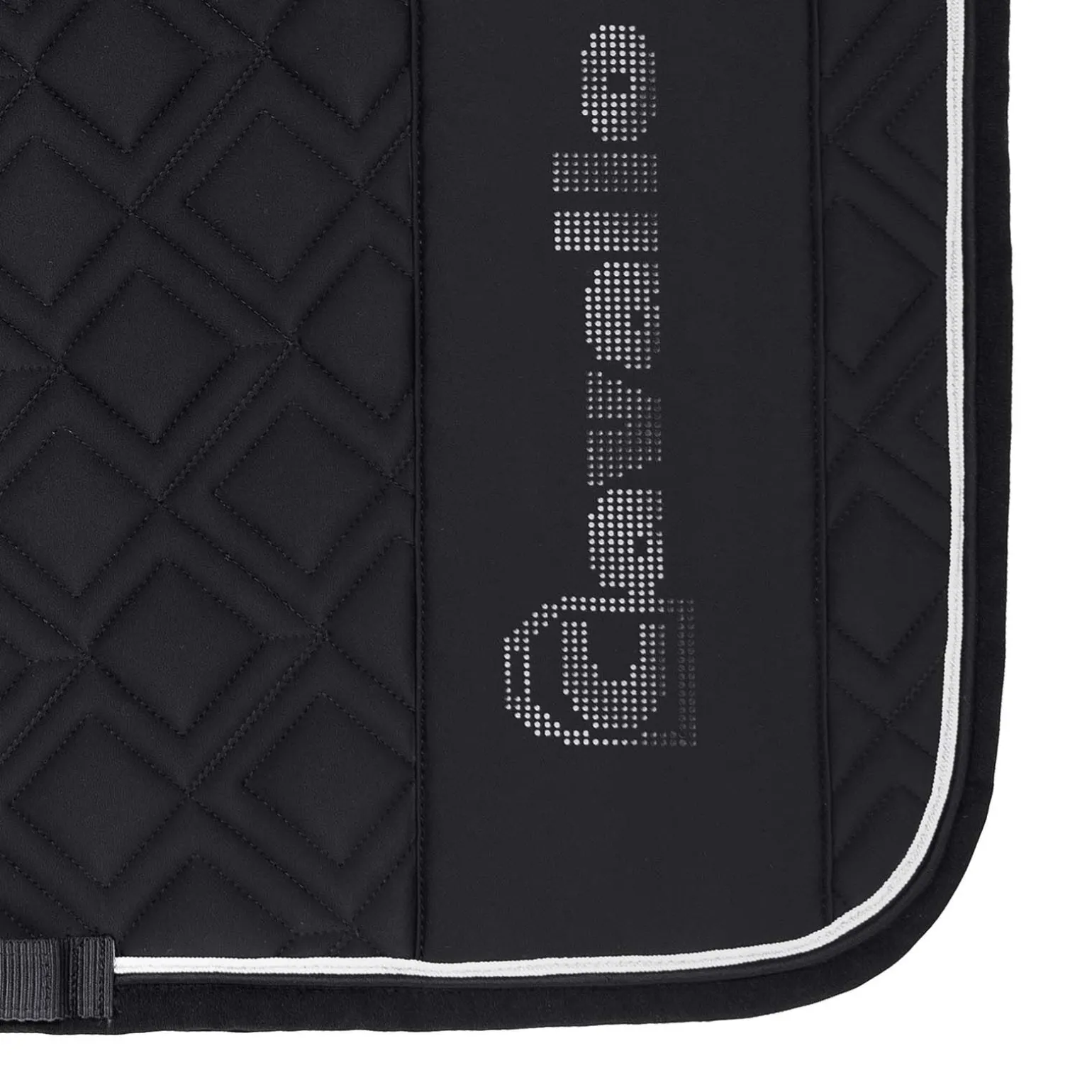 Den sporty, funksjonelle sjabraken er laget av et elastisk softshellmateriale.Det utvendige stoffet er laget av softshell, noe som er særlig lett å rengjøre.Hele sjabraken har dobbel diamantvattering.Begge sider har en vertikal, glatt, ensfarget stripe på ryggen.På stripen er en perforert, stor, vertikal Cavallo-logo.Det er et glinsende, reflekterende materiale under hullene til Cavallo-logoen.Forsterking foran er laget av memory foam, noe som sikrer en optimal posisjon under salen.Sjabraken er innrammet av et hvitt bånd med en smal sølvstripe.Den hurtigtørkende og fukttransporterende innsiden i mesh er særlig skånsom mot pelsen, og gir maksimal komfort.En fôring som holder formen gjør at sjabraken ligger perfekt på hestens rygg.