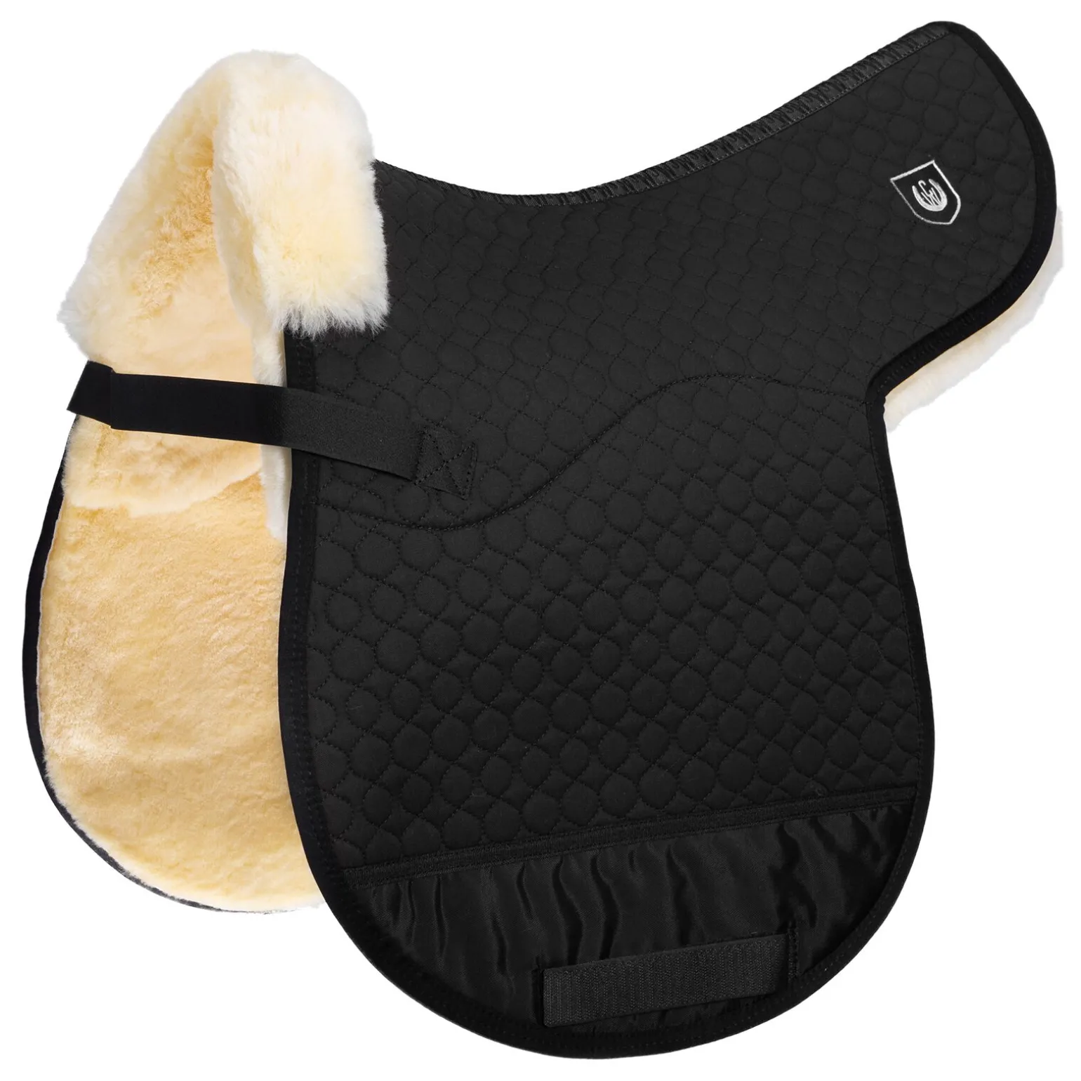 VS-Allround. Hele undersiden består av saueskinn, med 2 forskjellige ullhøyder. Setet har en ullhøyde på ca. 30mm, mens sidene har ca. 15mm, for å gi best mulig kontakt mellom hest og rytter. Holdes på plass under salen ved å tre gjorden gjennom stroppene nederst på salkappen. Borrelåsfeste. Nylonbelegget hindrer gnisning som ofte forårsakes av salgjorden. Foran er sauefellen trukket opp på oversiden som en kant, noe som letter plasseringen av salen. Kan vaskes i maskin med spesielt vaskemiddel for sauefell. Tåler også tromling. Vi anbefaler vårt vaskemiddel «C7». Vennligst respekter våre vaskeanvisninger.