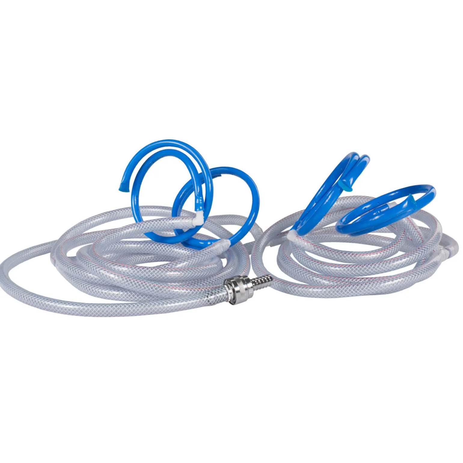 Effektivt nedkjølingssystem som kjøler alle 4 bena samtidig. Systemet kobles til spring eller vannslange. Plastspiralene festes til hestens ben, slik at vannet sildrer nedover bena.