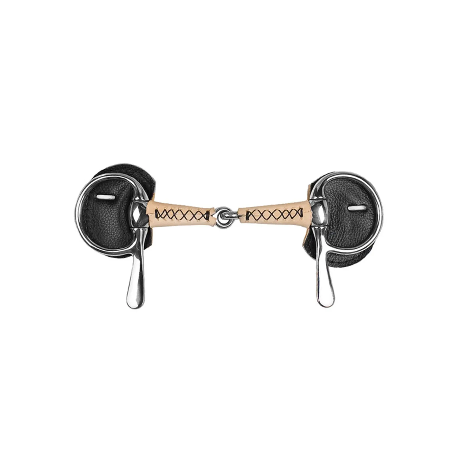 Todelt travbitt i rustfritt stål, med lærbelegg (Inneholder nikkel).