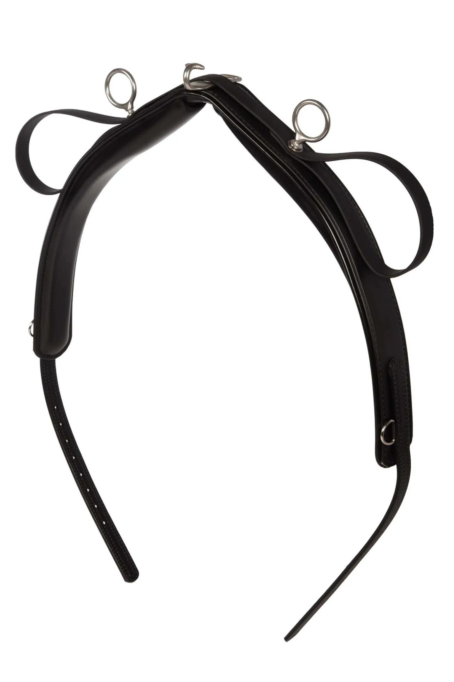 Materialer: webbing med syntetisk belegg/lær; beslag i rustfritt stål.