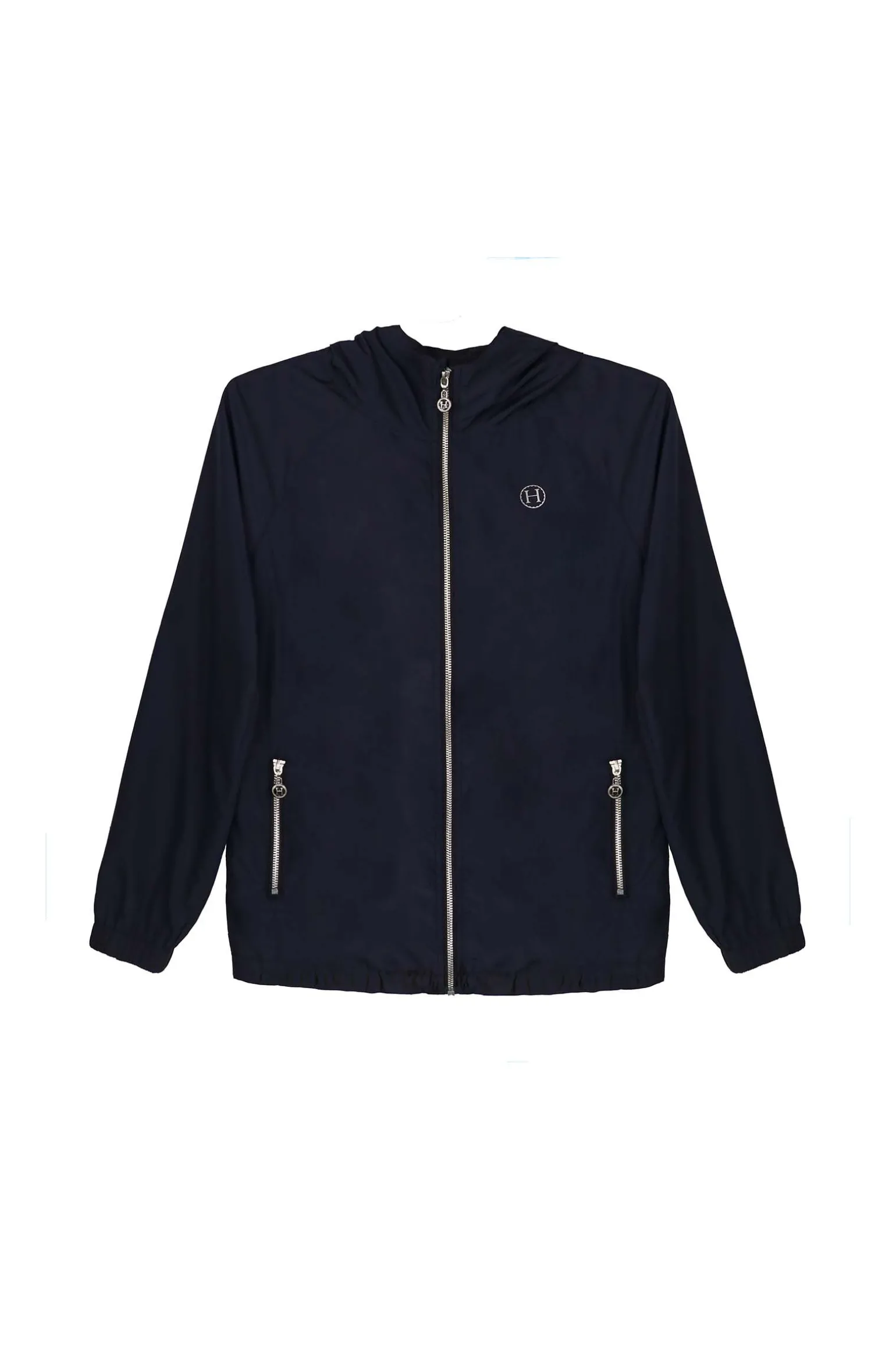 Jazz jakke er ekstra lett og perfekt om sommeren.Den er vannavvisende, og lommene kan lukkes. Logoen i sølv gjør det til en stilig og feminin jakke.Den kan brukes både når du er i stallen og rir, eller når du er og gjør andre ærender.