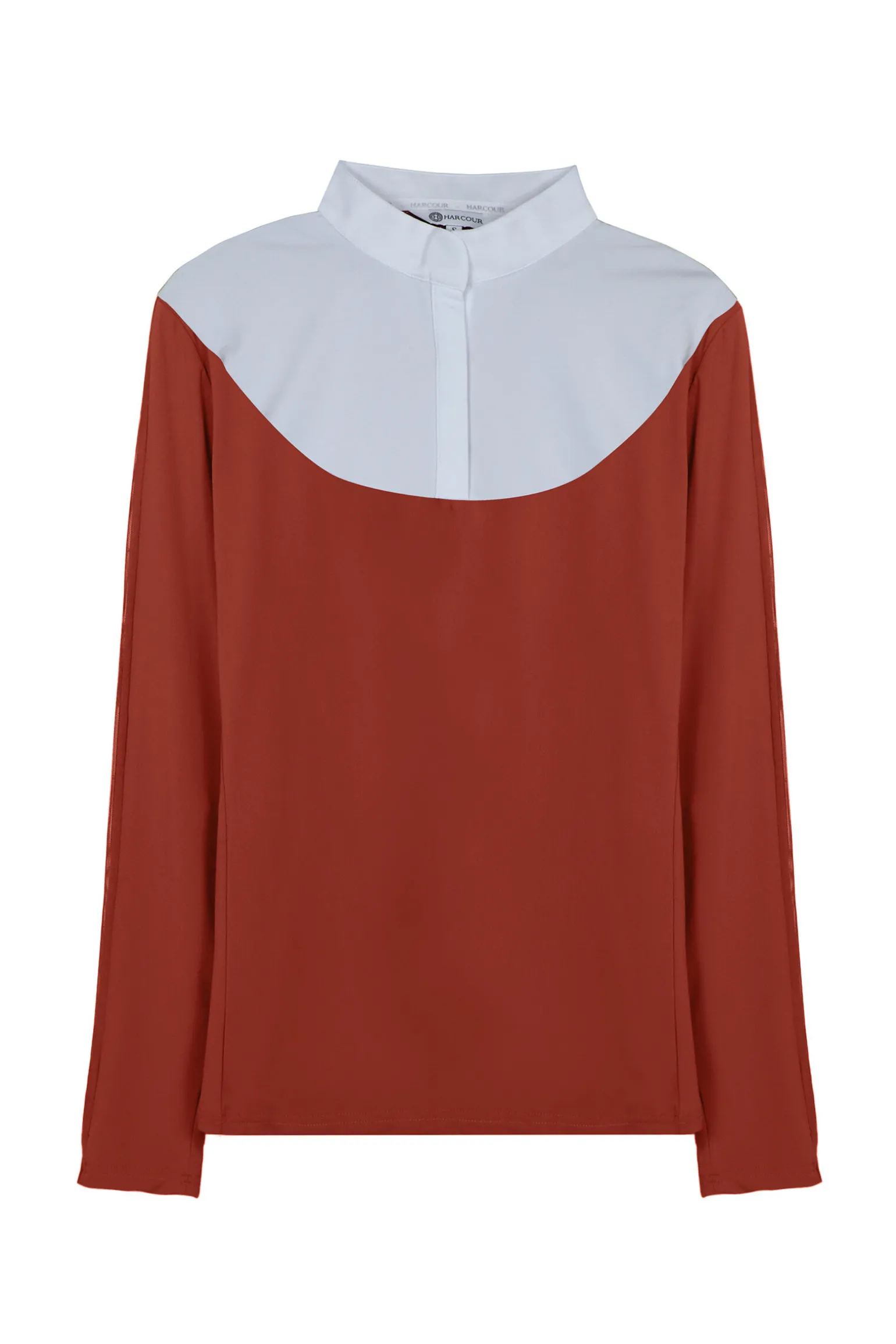 Ny konkurransepolo for kvinner: PANNIE-poloen med lange ermer.Feminin takket være sin slanke passform, har PANNIE konkurransepolo et lett og pustende materiale samt et mykt skjortemateriale.Det er mesh under pikselen og på ermene for et feminint og teknisk preg.Poloen lukkes med emaljerte trykknapper foran og en magnetknapp på kragen.