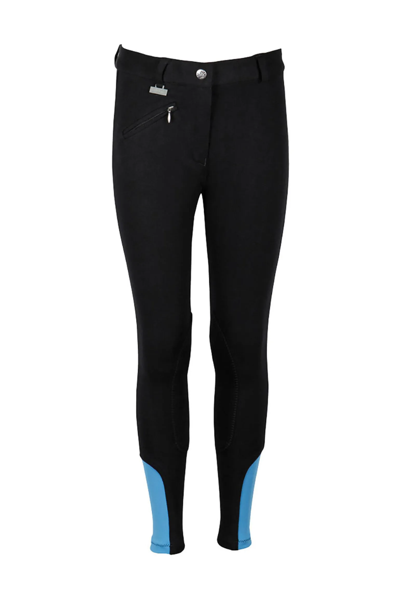 Tettsittende ridebukse for barn. Med glidelås på lommen, skyveknapp, glidelås, beltehemper og fleksibel lycra på leggene.