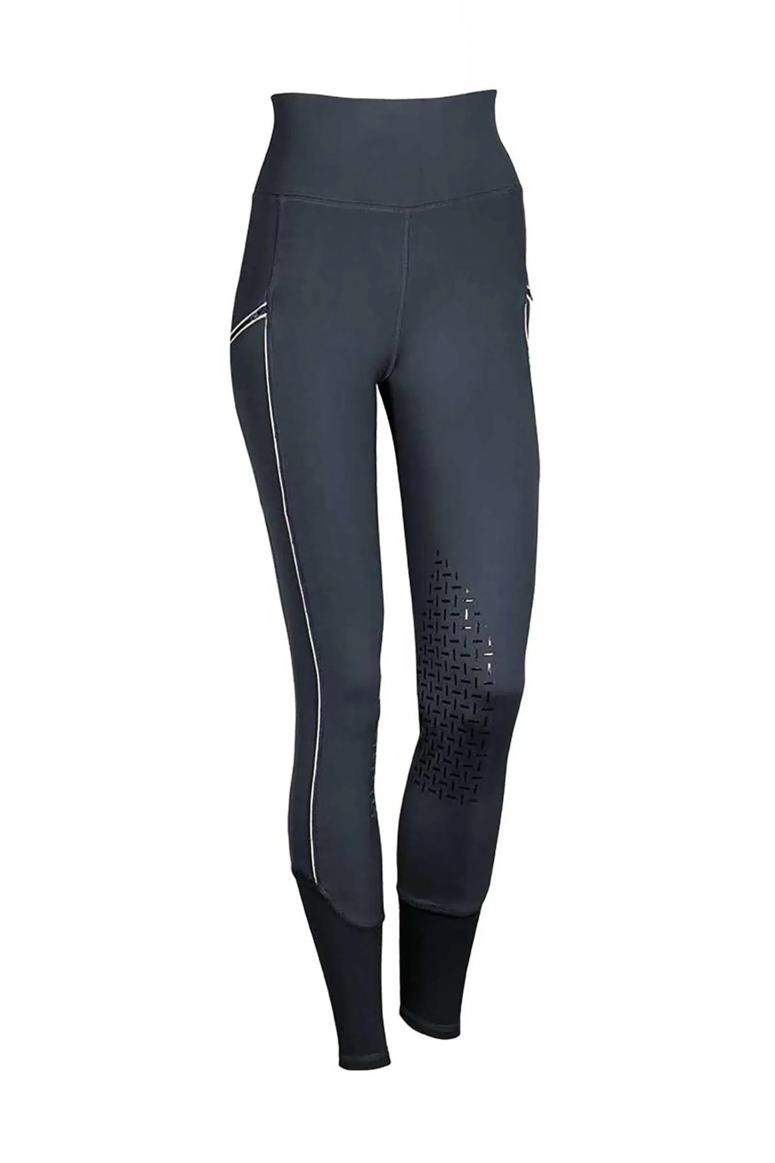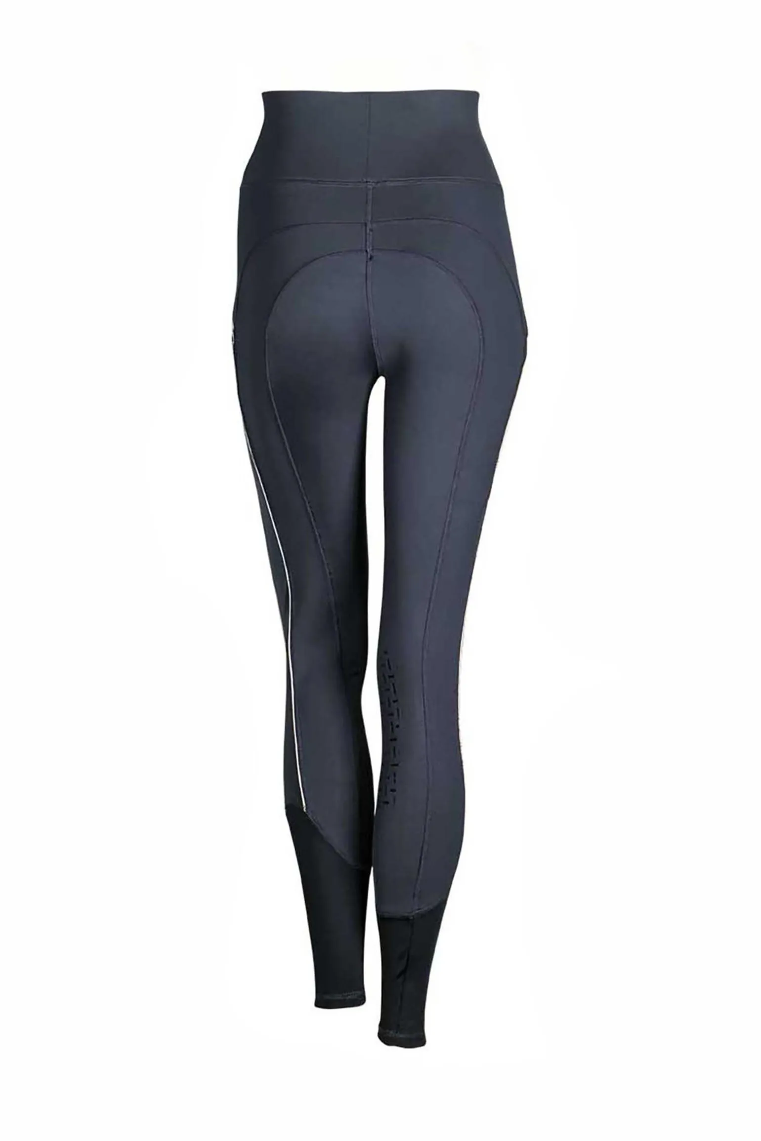 Den siste mote! Ridetights. Veldig komfortabelt og elastisk stoff, en modell du trekker på deg (uten feste foran), kontrastsøm på sidene, trykk, rundsydd sete med silikontrykk på knærne for ekstra grep i salen, lycraflex på beina.