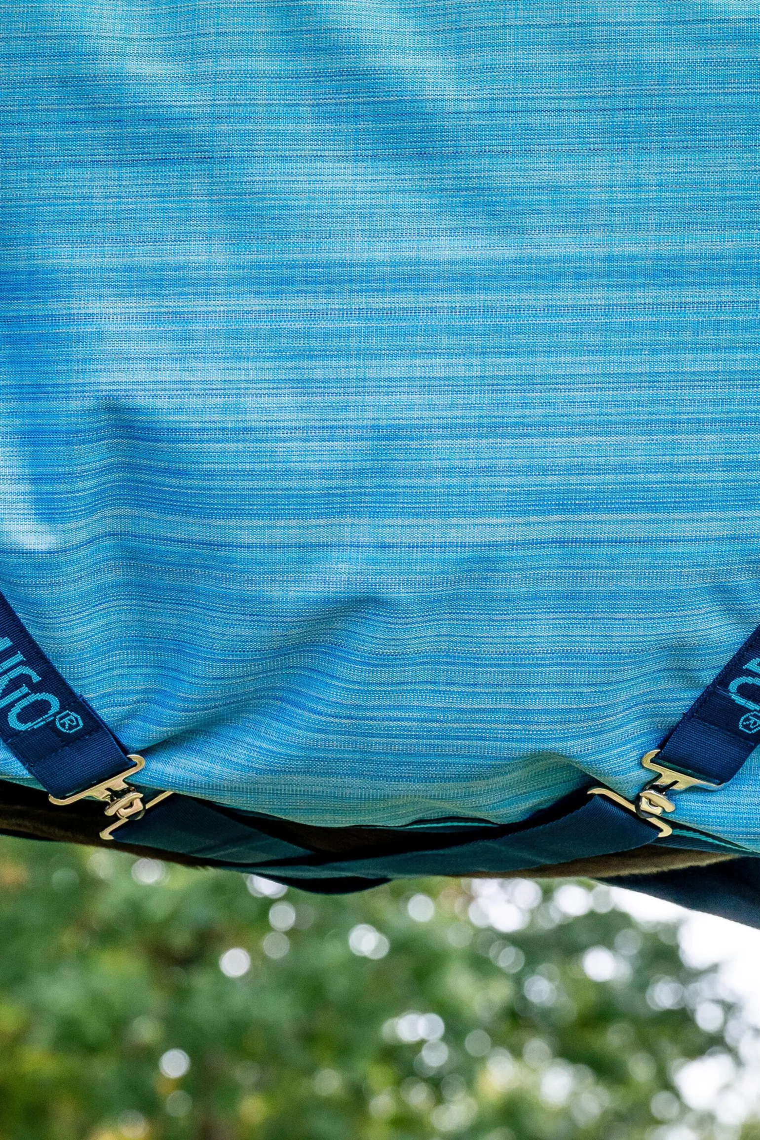 En vanntett og pustende utside i 900D polyester beskytter hesten fra været. Den glansforterkende innsiden forhindrer gang, og den patenterte Disc-lukkingen foran fjerner trykk og forhindrer gnag i skulderområdet, med sitt lette design. Buer ved beina foran gir bevegelsesfrihet, og kryssgjorder sikrer en god passform. Takket være den inkluderte halsen kan du tilpasse dekkenet etter været og behovene hesten din har. Dette dekkenet hjelper til med å beskytte planeten ved å bruke ubrukt garn i stoffets produksjonsprosess, noe som reduserer produksjonsavfallet. Det utvendige stoffet er laget av ubrukte ender av garnsneller som gir hvert dekken et individuelt flerfarget utseende.