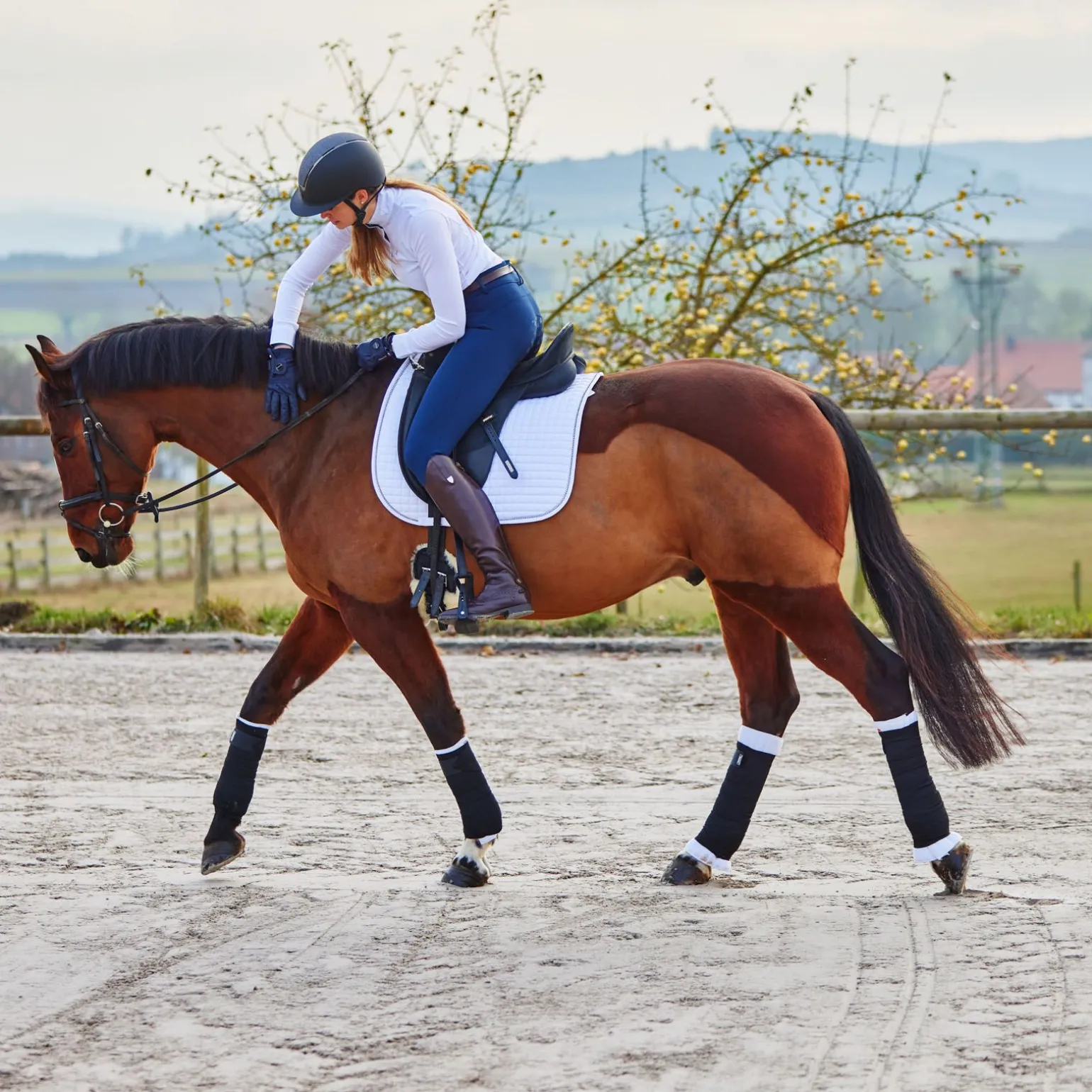 Hester med bokshvile trener ordentlig støtte, så hvis hesten din trenger terapi, trenger den Horze Supreme Bandasjeunderlag som støtte. Disse myke bandasjeunderlagene vil gi hesten komfort og stabilitet i boksen, på hengeren eller når den trenger litt ekstra støtte. Du kan vaske og tørke det hvite vatterte stoffet mellom bruk, og det beholder fasongen og størrelsen. Horze Supreme Bandasjeunderlag selges i par. Velg ett par til frambein og ett par til bakbein for å få et komplett sett. Horze Supreme Bandasjeunderlag vil ikke brette eller krølle seg under noen av våre Horzebandasjer.