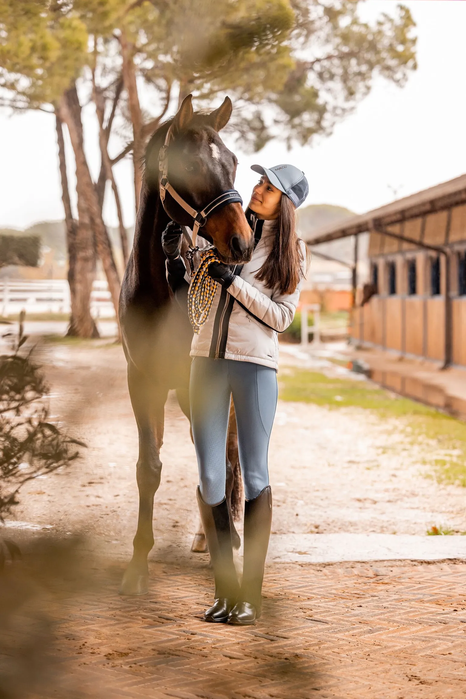 Denne funksjonelle hybridjakken til dame har et lett fôr, er vattert på sidene og har et ensidig, elastisk fleecepanel bak, samt på ermene.Kontrastbånd på armene og glidelåsen.Vannavvisende og vindavvisene gjør dette til et perfekt plagg å bruke dersom du ønsker flere lag.3D logotrykk bak ved nakken og en liten logoplate i metall på kanten foran.To skjulte glidelåslommer holder eiendelene dine trygge under rideøktene.Knappene bak åpner en ridesplitt for økt bevegelsesfrihet i salen.
