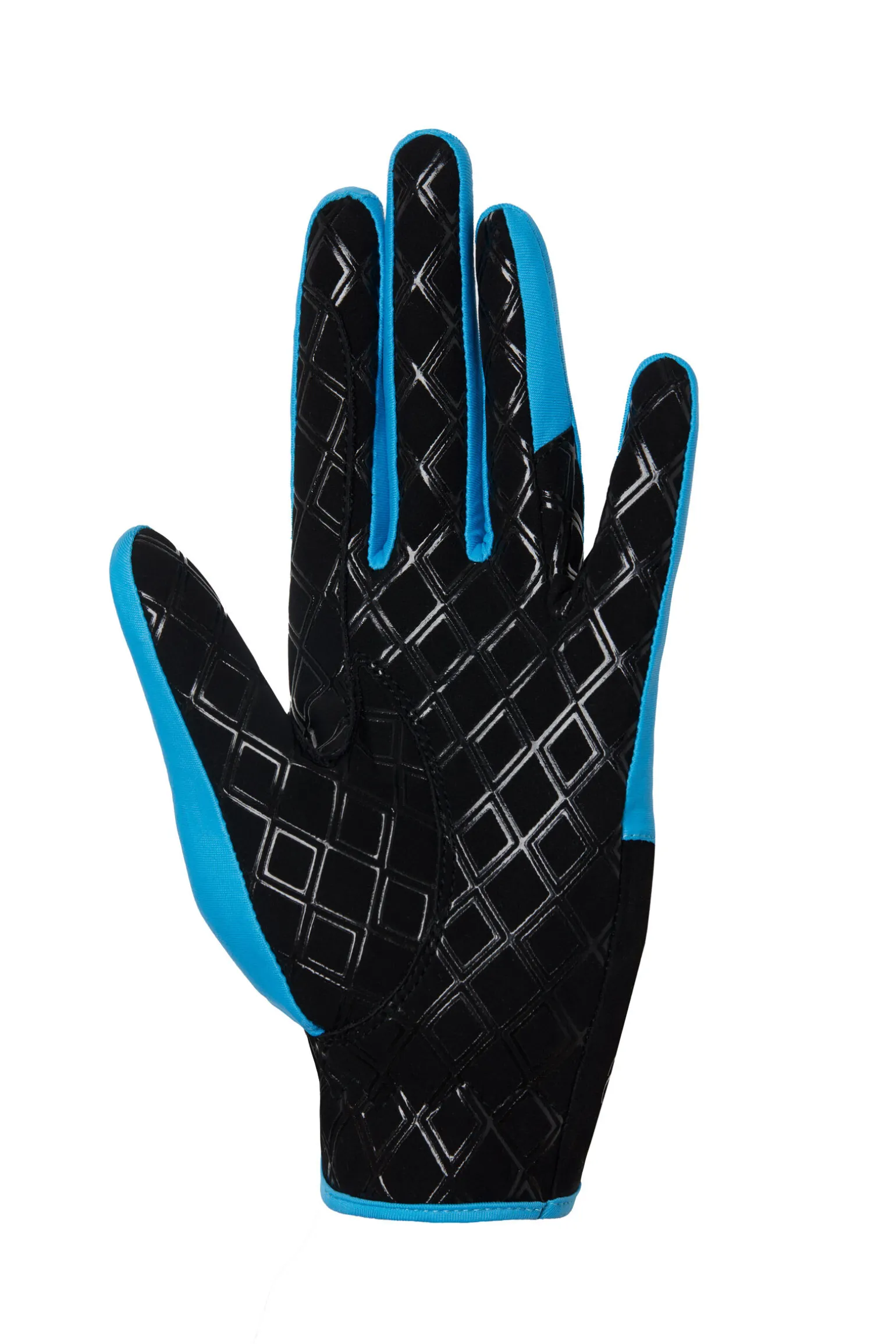 Horze Eliana ridehansker er laget av elastisk materiale, og kommer med gripende silikon i håndflaten i PU-lær.Elastikken rundt håndleddene holder dem på plass.