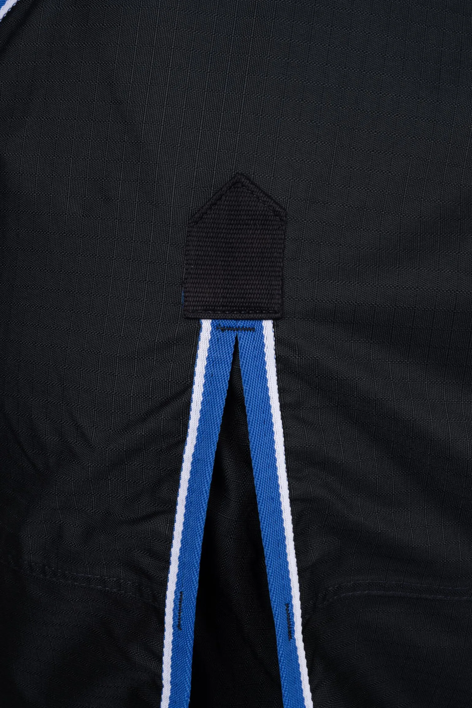 Dette dekkenet med hel hals er laget av et vanntett, pustende stoff. Den gode passformen rundt skuldre og nakke gjør det komfortabelt, og de høye bogsplittene gir mye bevegelsesfrihet. Frontspenner, kryssgjorder, beinsnorer og haleflapp gjør dekkenet sikkert.
