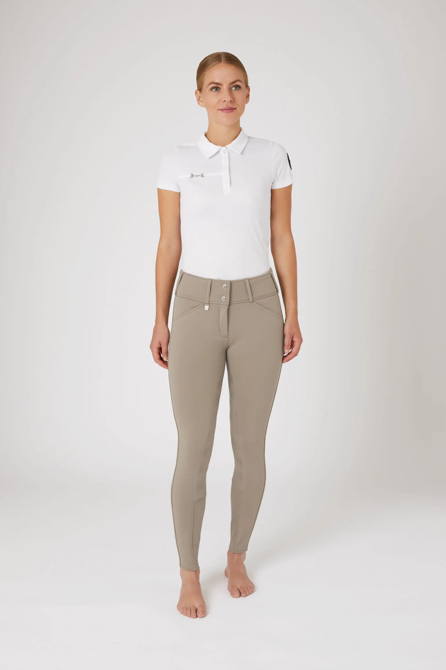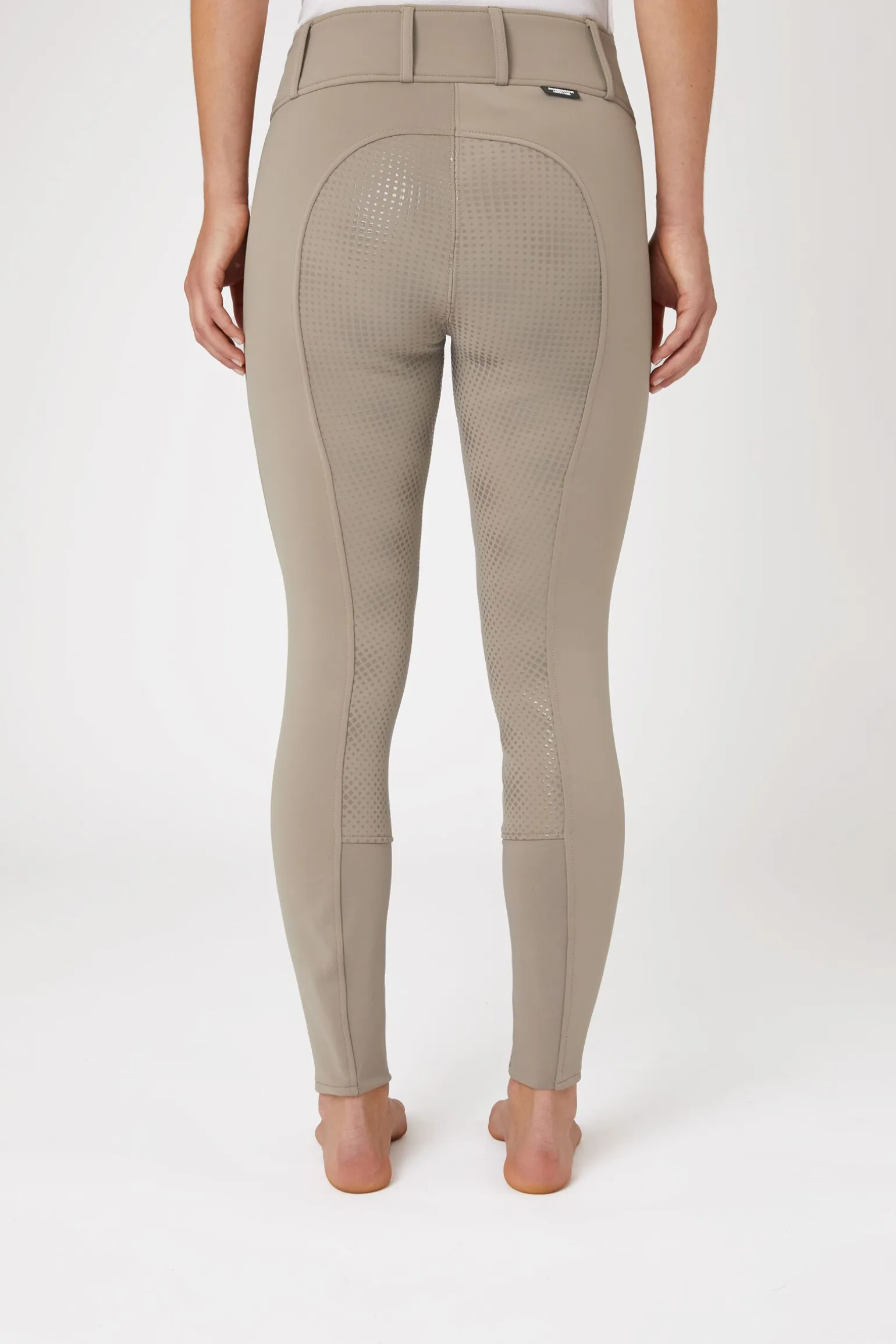 På din neste kalde ridetur kommer du til å elske denne versjonen av vår Grand Prix-ridebukse, som både er ny og forbedret, med varm, vannavvisende overflate med helforsterking. Med fleecefôr, bred midje og silikongrep får du god kontakt med salen med denne ridebuksen, i tillegg til et ekstra lag med isolasjon til vinterrideturen. Det tøyelige, pustende soft-shellstoffet støter fra seg høy og hestehår, så du holder deg ren og pen. Helforsterkningen gir god bevegelsesfrihet, og den elastiske delen rundt leggen holder buksen på plass under støvel eller chaps.
