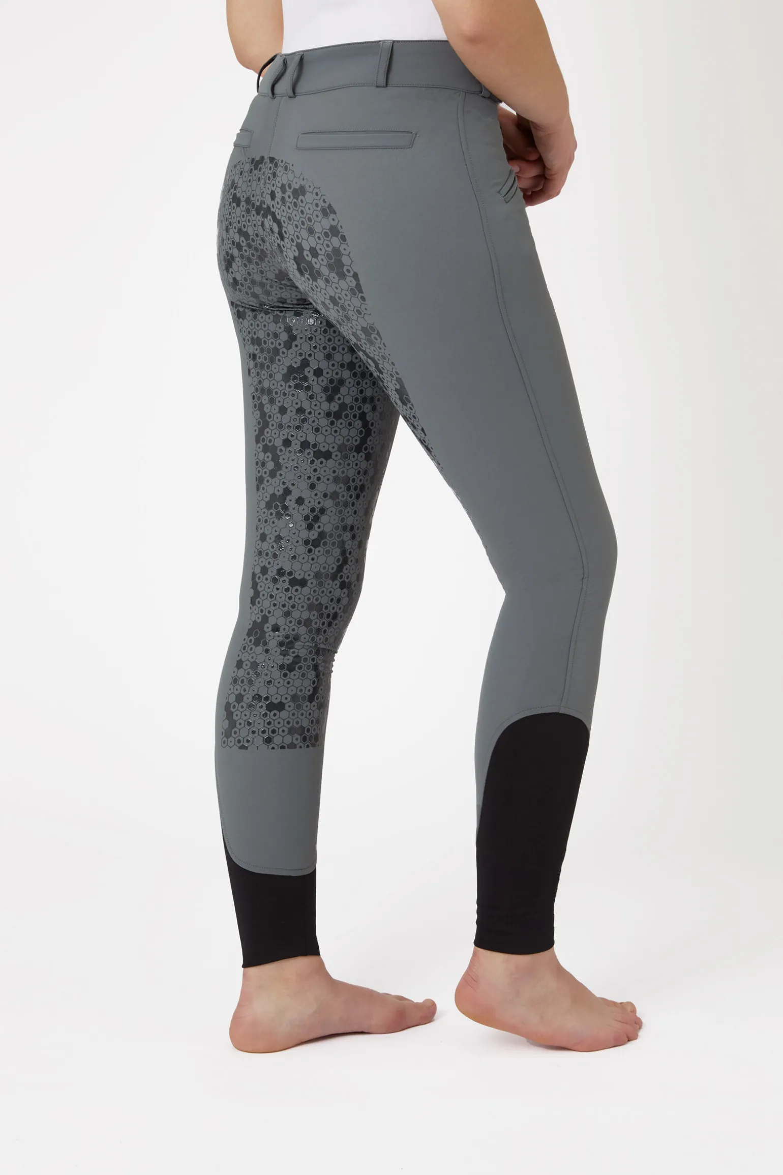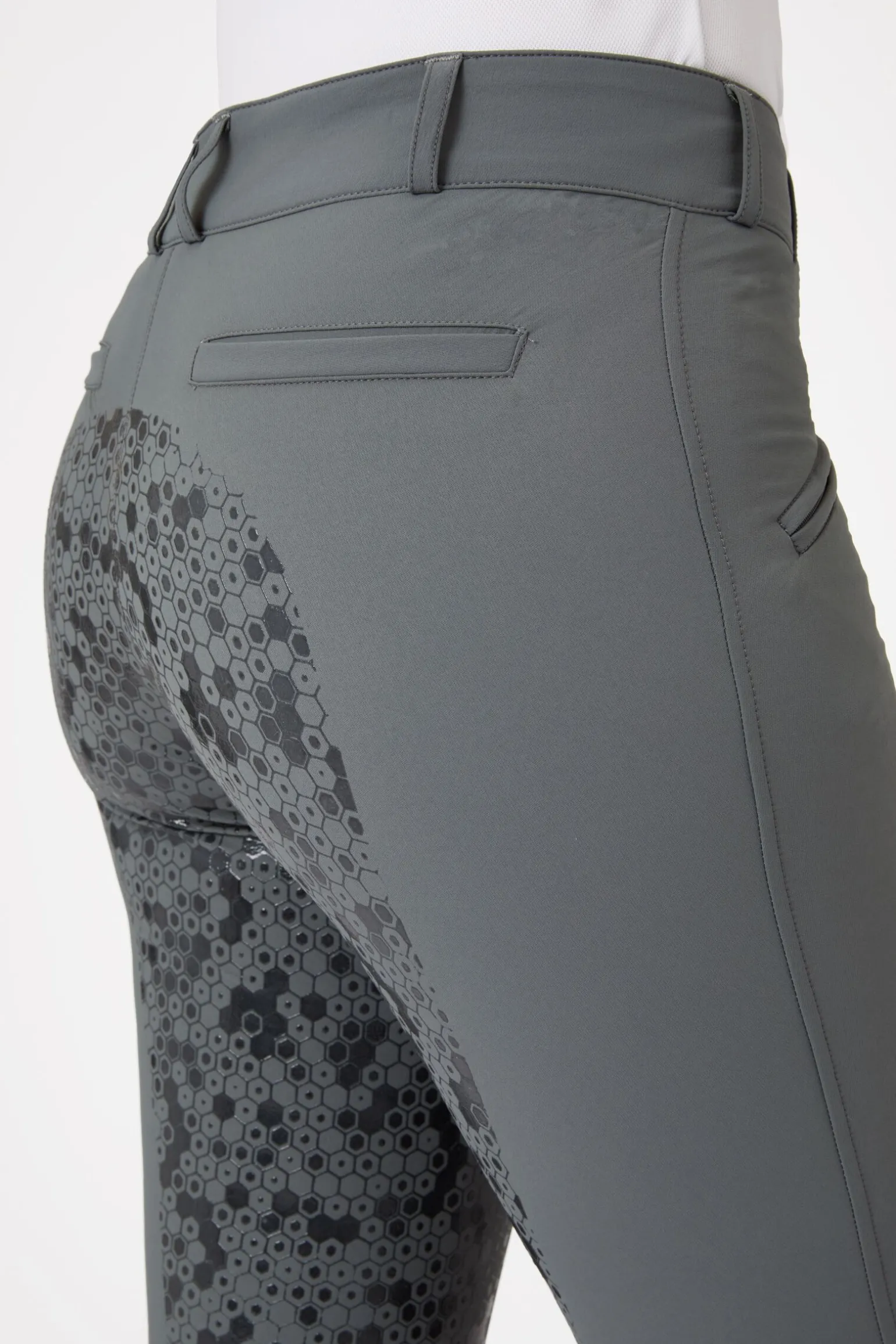 Disse ridebuksene med høyt liv passer som en drøm og holder deg trygt i salen med det helforsterkede silikonsetet.To små lommer holder på nøkler og godbiter.Elastiske ben nederst passer perfekt i dine favoritt-ridestøvler.Velg mellom varierte farger etter hva som passer din ridegarderobe best.