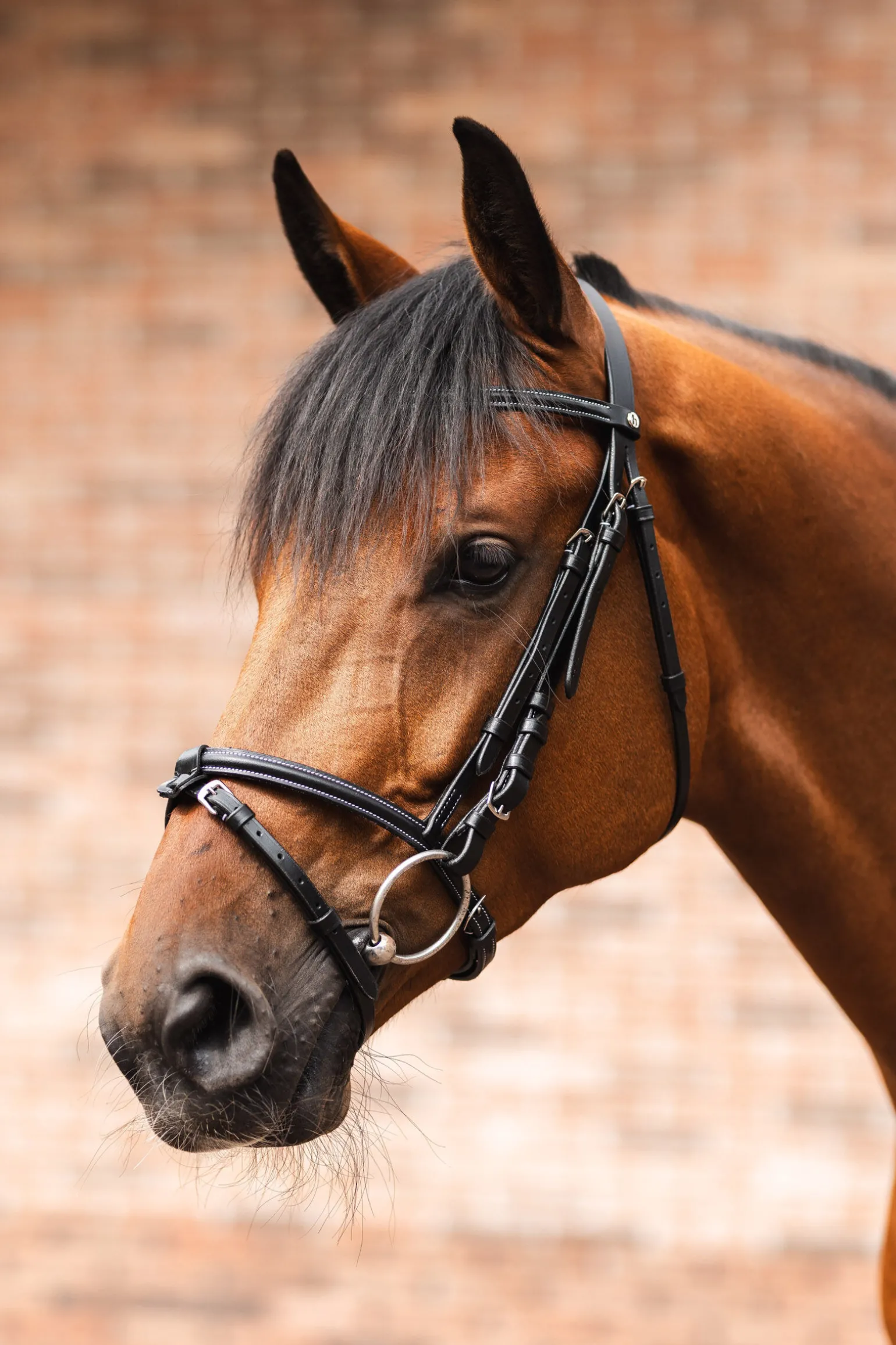 Dette hodelaget kommer med en avtakbar nedre nesereim, slik at du kan tilpasse hodelaget etter behovene til hesten din. Den myke polstringen ved nakken og på pannereimen sikrer optimal komfort og forhindrer gnag. Det enkle designet på nakkestykket gir et rent og elegant utseende. Kontrastsømmen gir et sofistikert preg på hele designet. Det formede pannebåndet med logodetaljer er et diskret blikkfang.