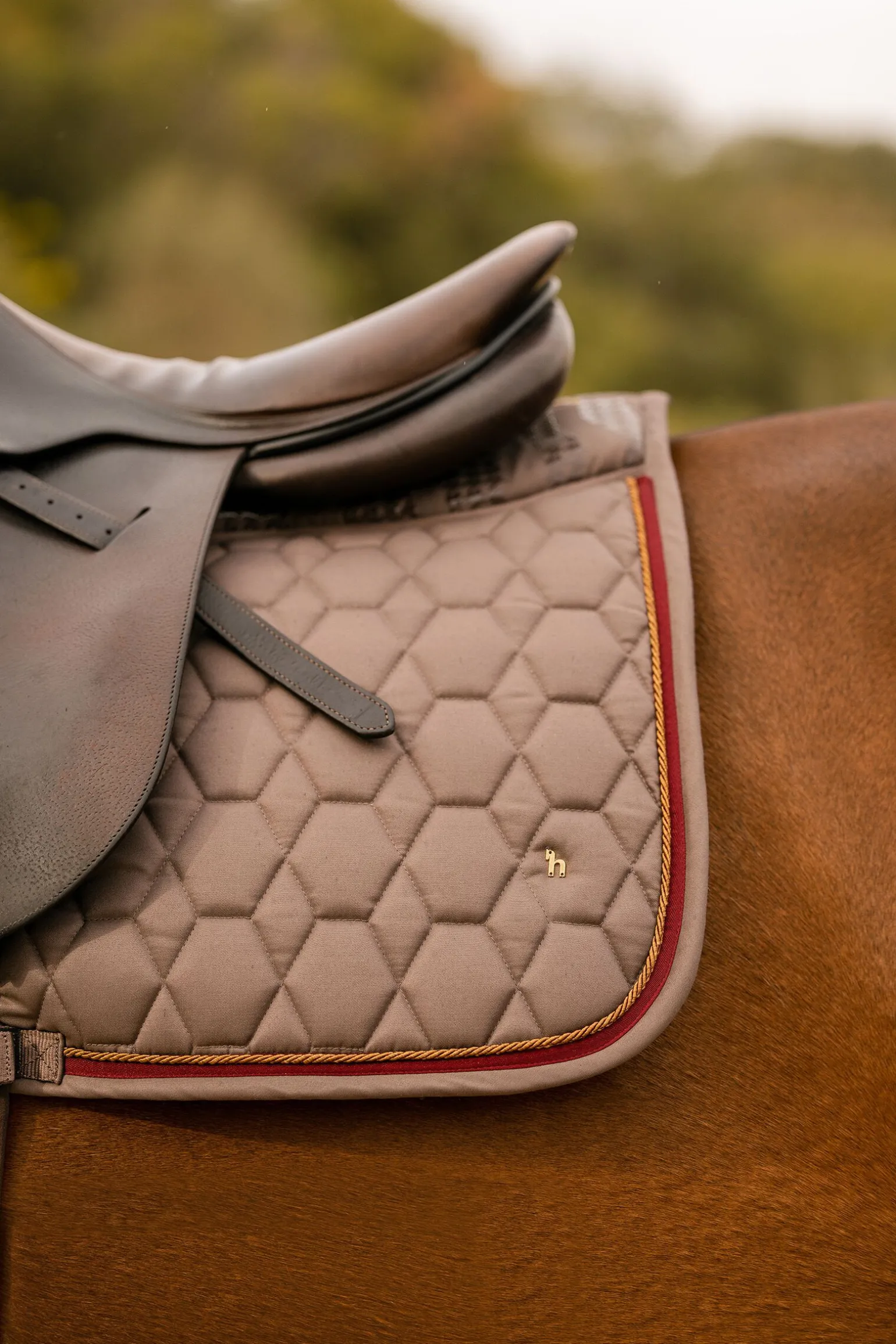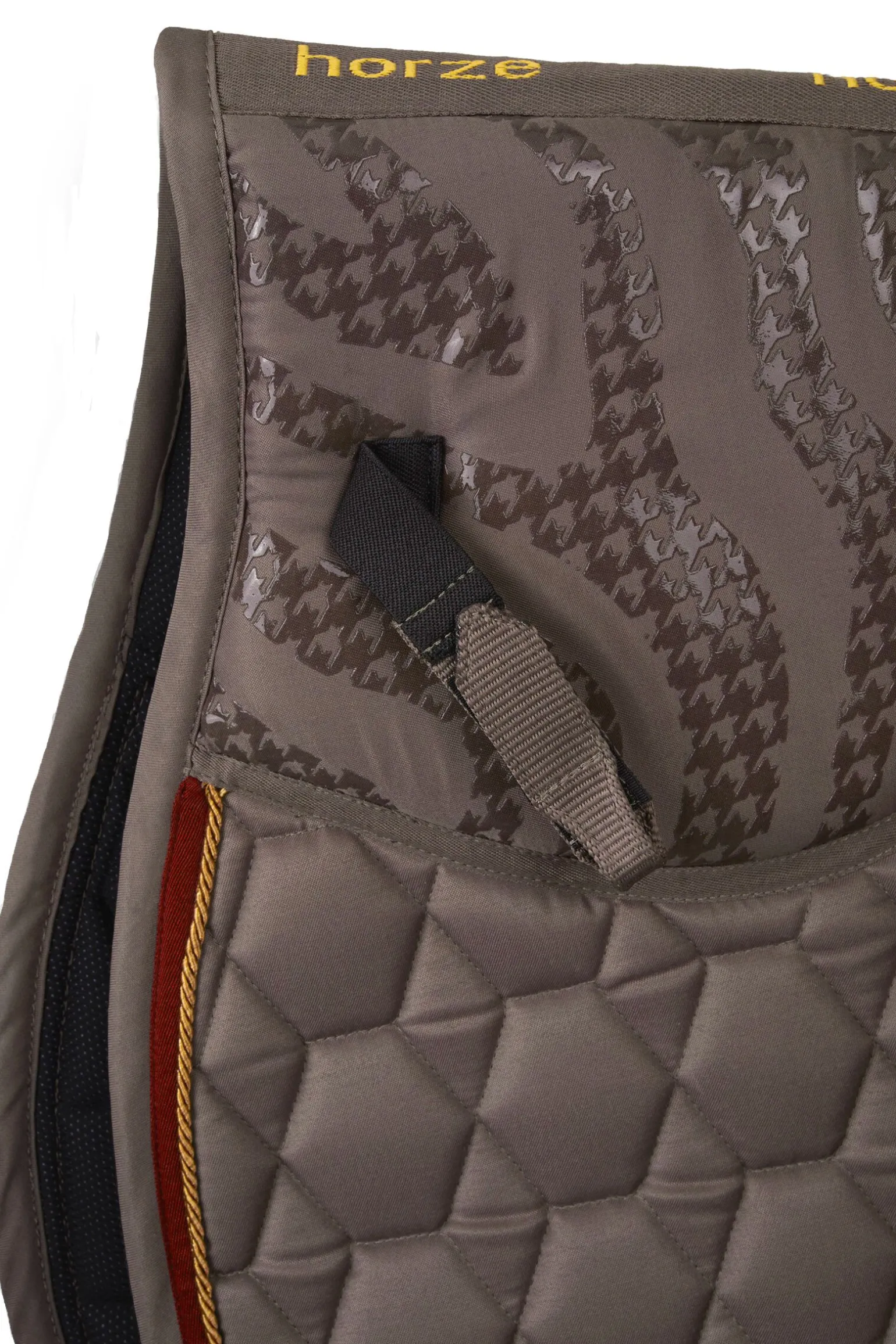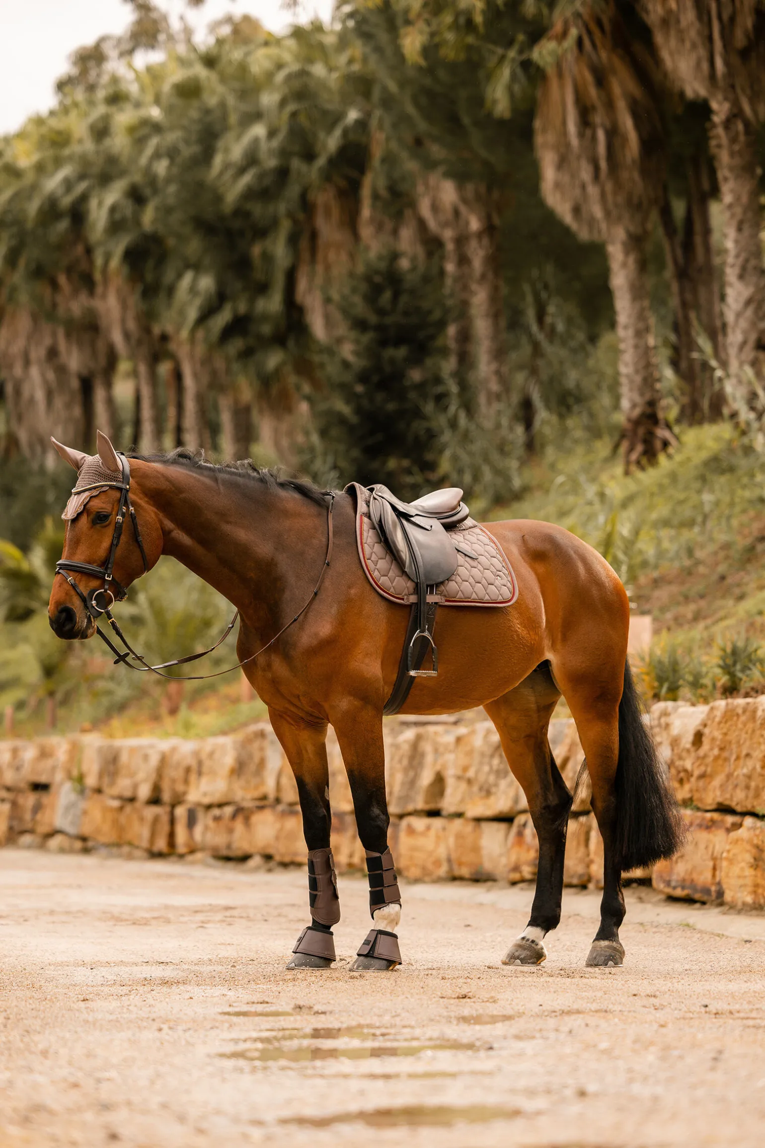 Den anatomiske utformingen på Horze Kenya sjabrak kommer med silikondetaljer for å forhindre salen fra å skli.Lett polstring under salen gir ekstra komfort.Fukttransporterende underside holder hestens rygg tørr.Tre rader med bånd og det tidløse designet gir et klassisk utseende.Metalliske detaljer gir et elegant preg.Bruk denne sjabraken med resten av vår Horze Kenya-kolleksjon for et helhetlig inntrykk.