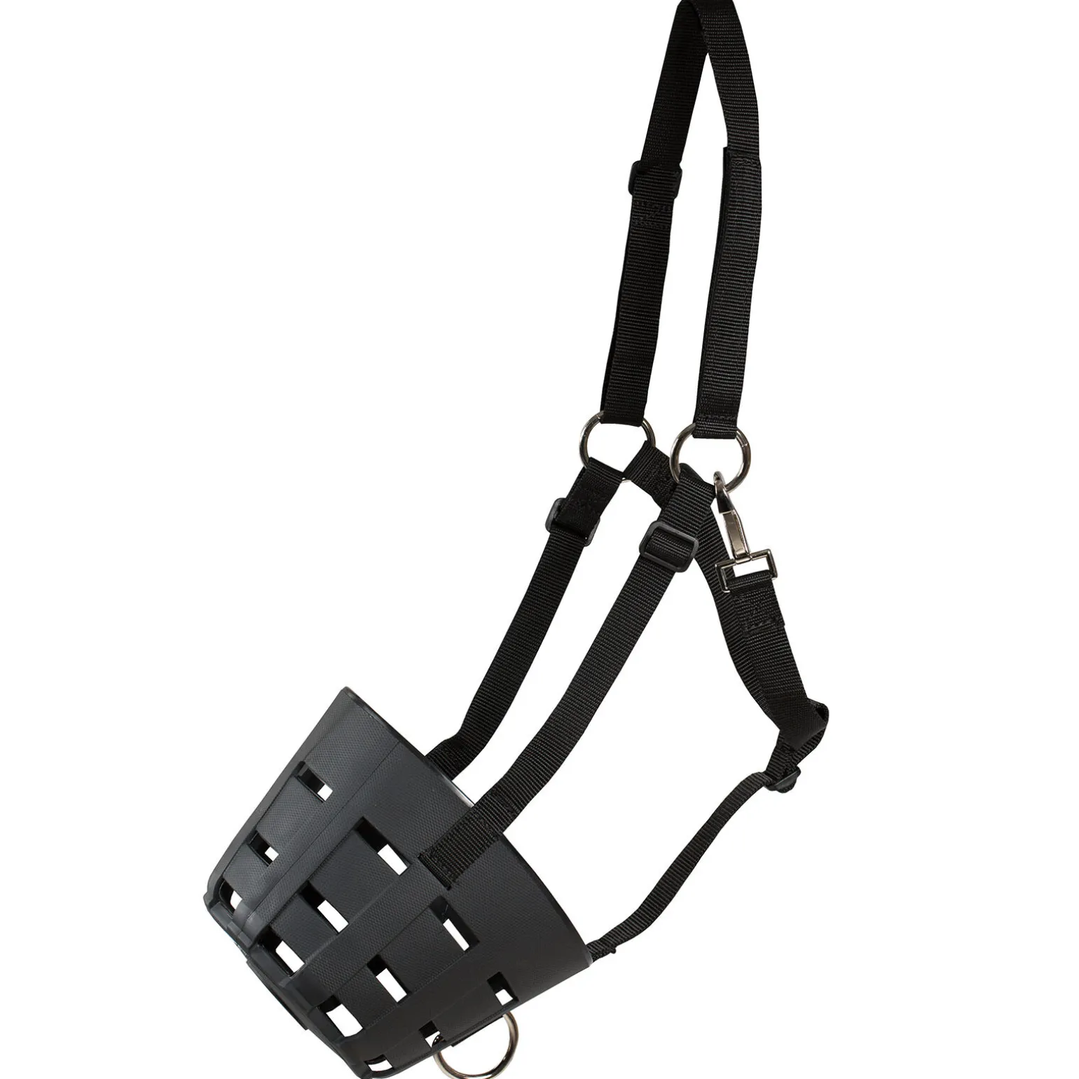 Bruk denne munnkurven på hesten som trenger å begrense sin gressetid. Dette er også et funksjonelt valg når du trener hester som har for vane å bite. Flere små rom forhindrer spising og biting, samtidig som det gir god gjennomstrømning av luft. Munnkurven er enkel å vaske, er holdbar og festes lett over en grime. Det myke materiale forhindrer ubehag på huden.