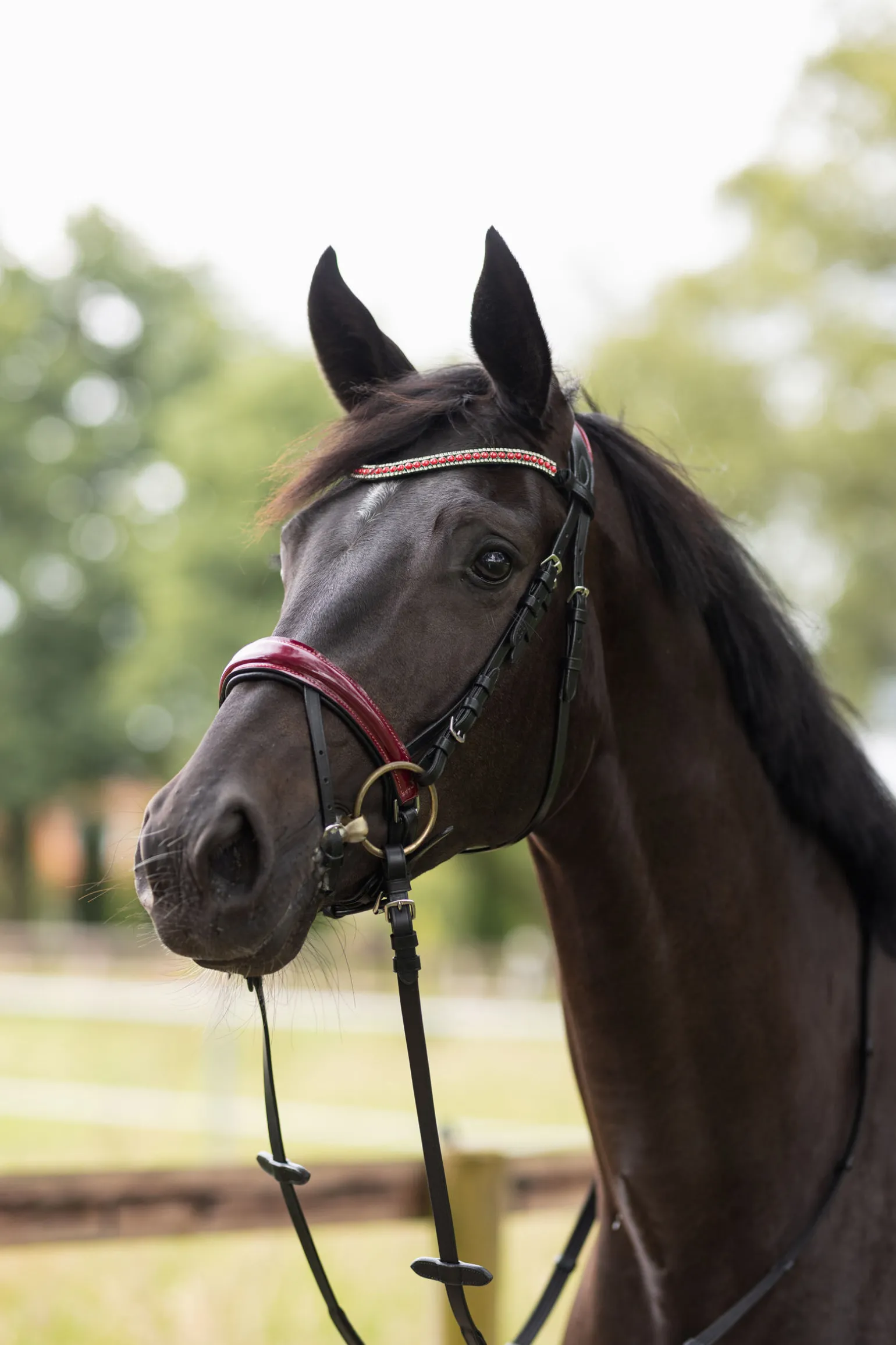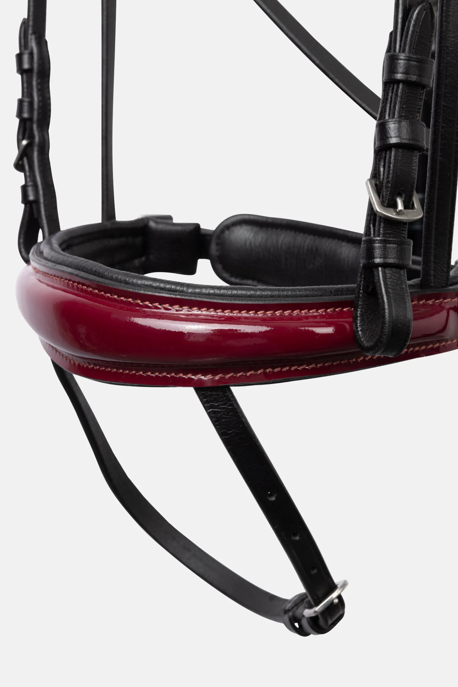- Blankt lær på nesedelen i vinrød farge