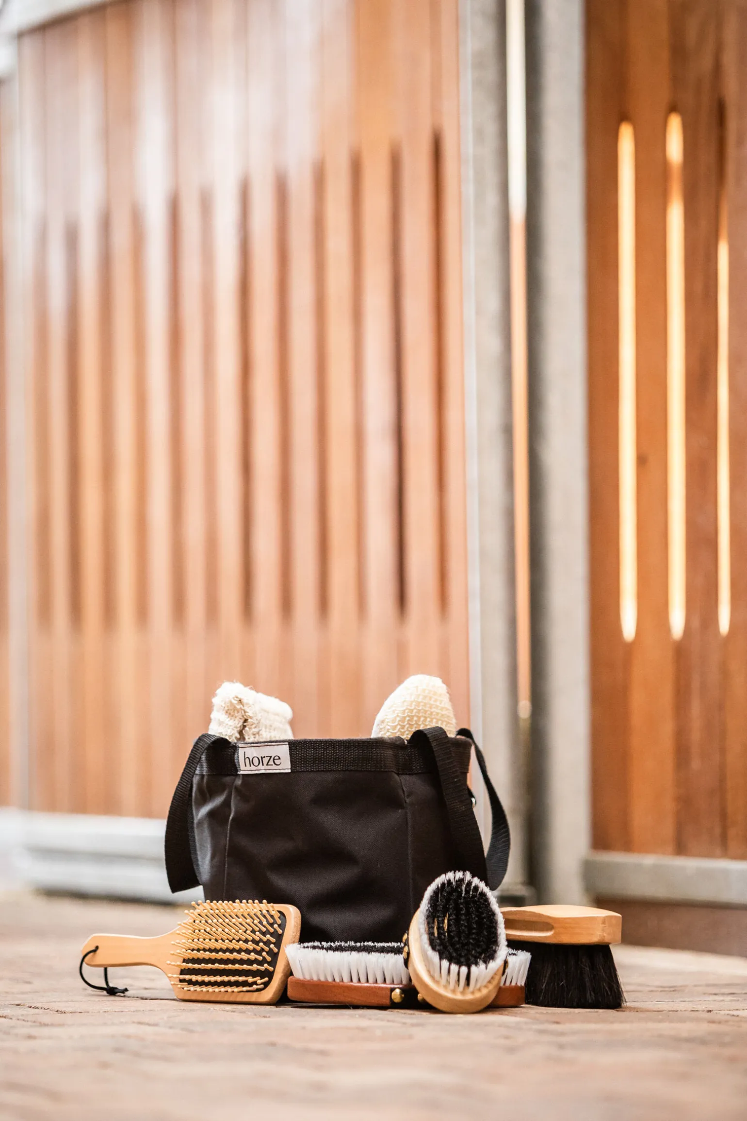 Inkluderer: kroppsbørste (stor), kroppsbørste (medium), finbørste, man og halebørste, sisalhanske og håndkle.