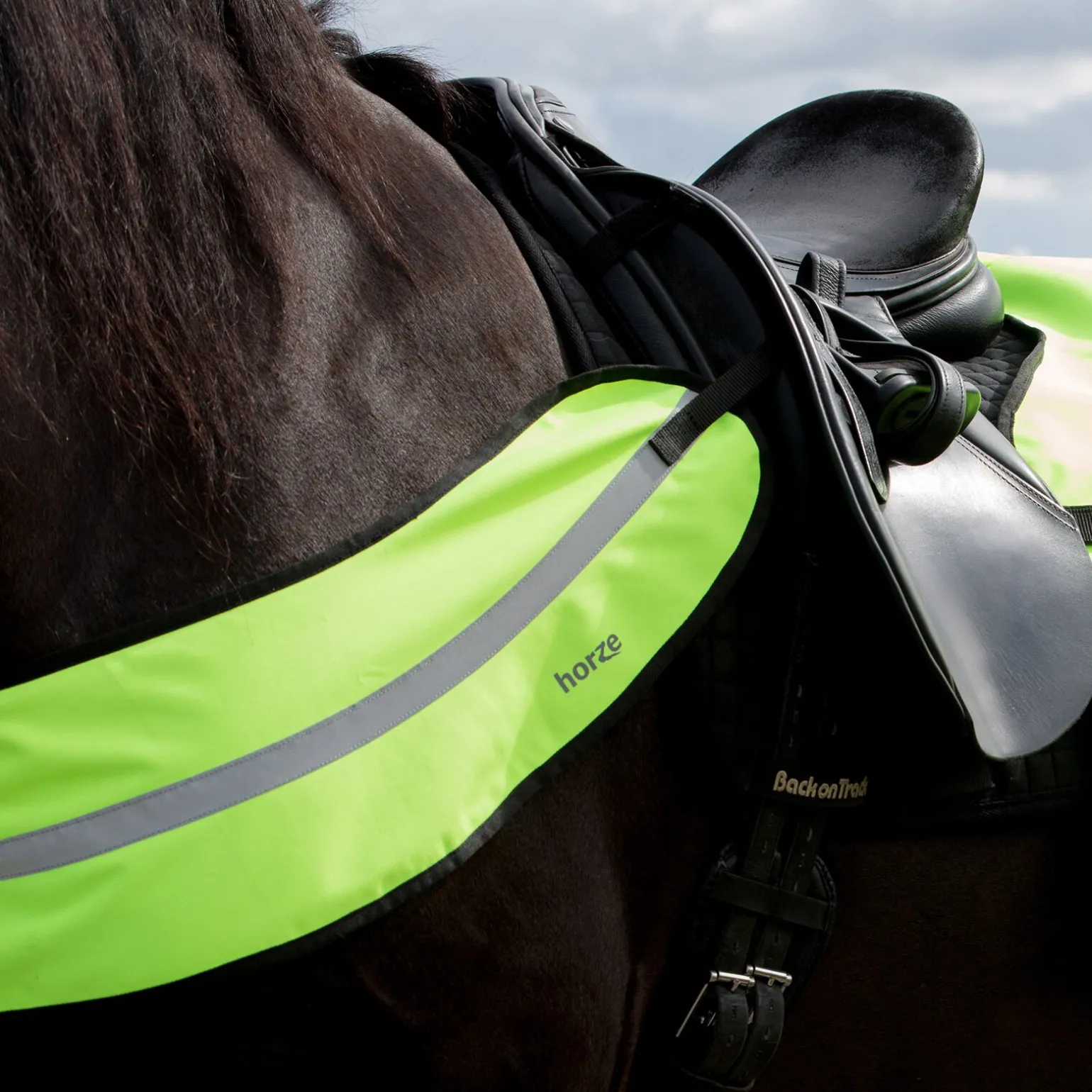 Tilfør et ekstra lag med reflekterende sikkerhet på din hest, med dette enkle fortøyet. Det reflekterende båndet på dette enkle fortøyet vil sørge for at du og din hest er synlig for møtende trafikk. Det enkle borrelåsfestet ved manken gjør at du lett fester den oppe ved salen. Holdbar 600D neongult stoff, med en bred, reflekterende stripe som matcher resten av vårt reflekterende sikkerhetsutstyr.