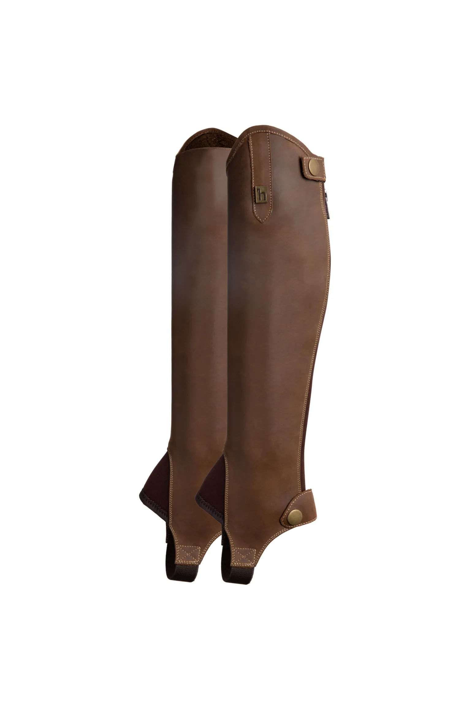 Horze Ronda chaps får lett rideskoene dine til å se ut som støvler.Glidelåsen bak gjør dem enkle å ta av og på, og den er komfortabel med strikk.Mykt lær former seg til leggen for en perfekt passform.Fotstroppen holder dem på plass.