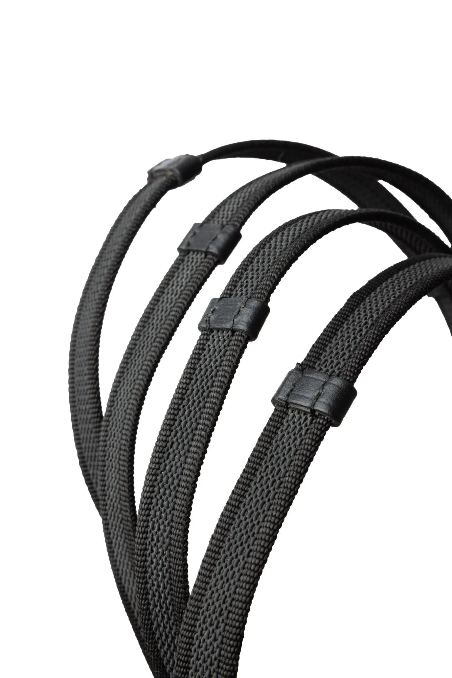 Smale, vevde tøyler dekket med et lett gummigrep som gir kontroll uten å føles klumpete i hendene.