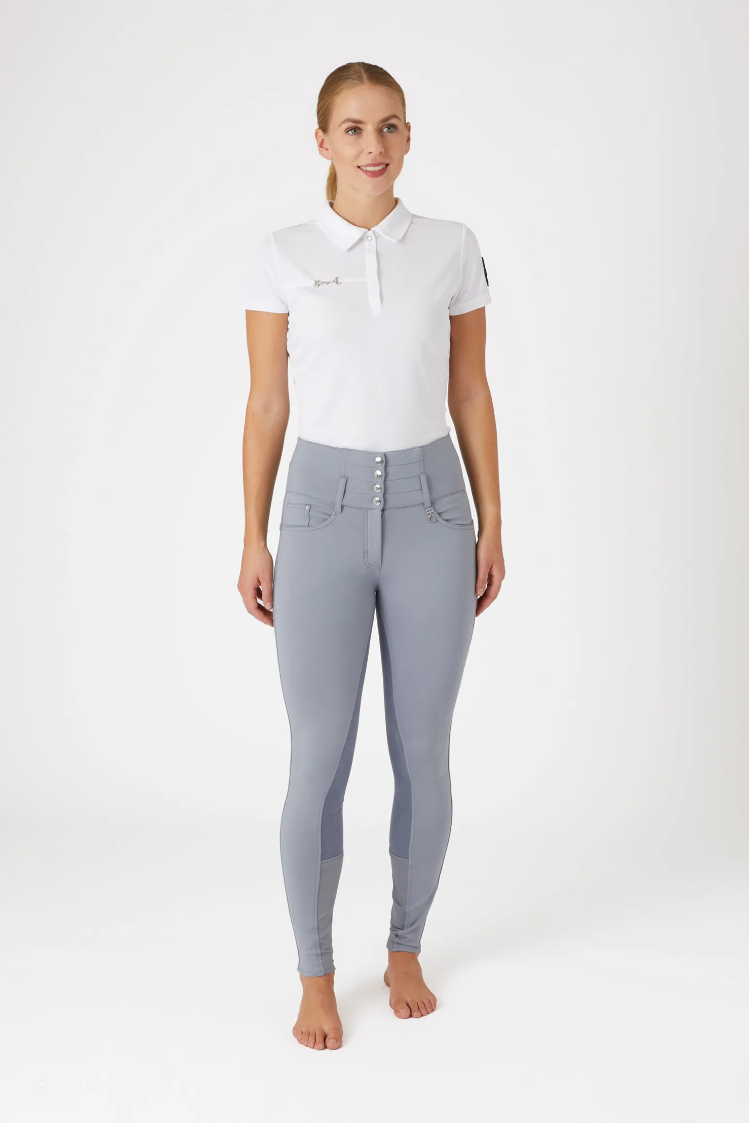 Den bestselgende Tara ridebuksen til dame fra Horze er nå tilgjengelig med helforsterket lær!Med klassisk glidelås og lukking med fire knapper er denne stilen den ultimate når du vil kombinere komfort med den perfekte silhuett.Det ultrahøye livet gir både en tett passform og ekstra slankende utseende, samtidig som du får ekstra støtte.Stoffmiksen er myk og komfortabel, med akkurat nok stretch.
