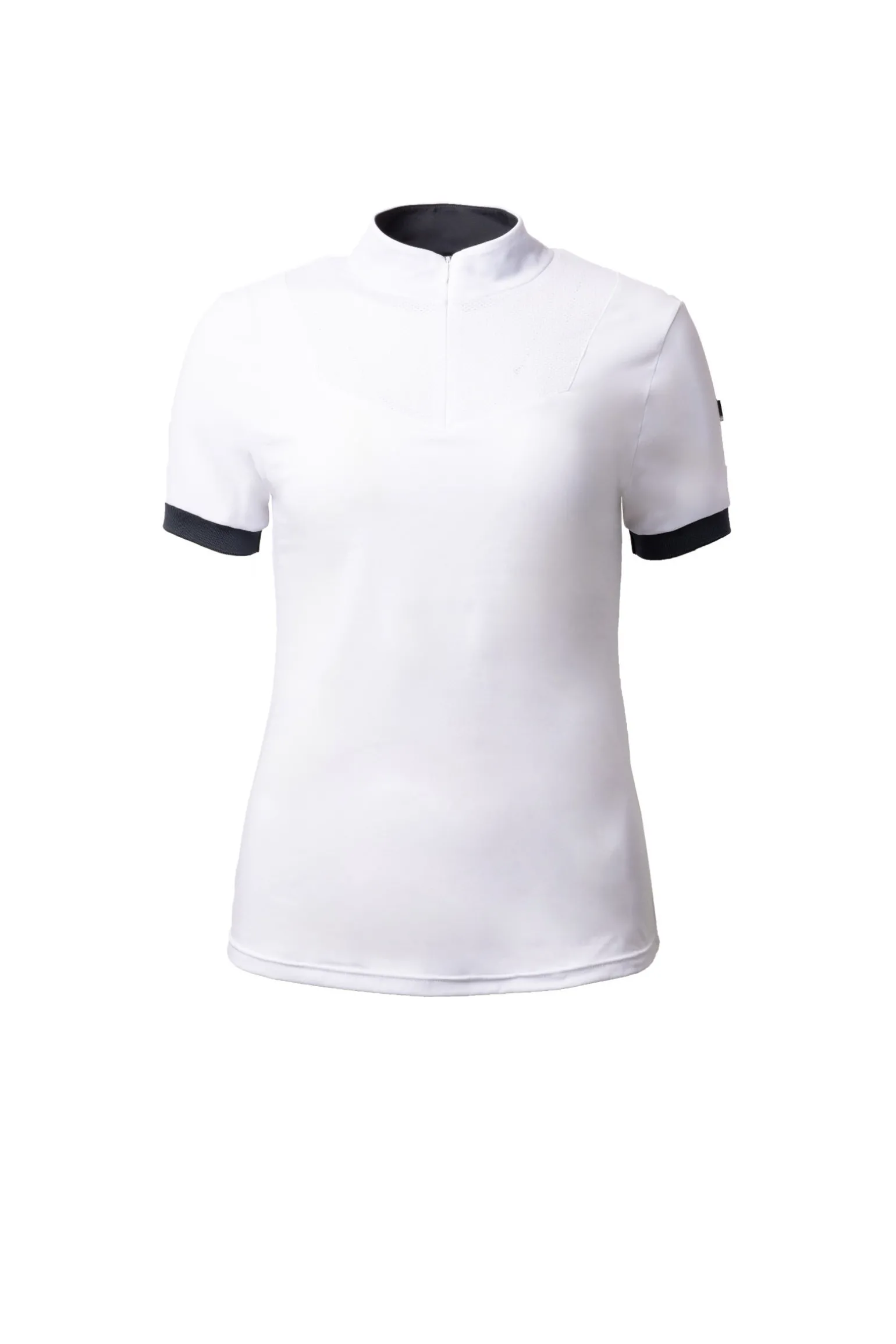 Kragen på denne nydelige stevneskjorten er ideell å bruke under konkurranse, men kan også glides ned slik at skjorta kan brukes under vanlig trening. Nettingstoffet på brystet og ryggen gir ekstra luftgjennomstrømning for maksimal funksjonalitet. Glidelåsen er enkel å bruke og gir deg muligheten til å endre raskt. Formen er sporty, men feminin og passer til flere ulike sammenhenger. Stoffet er mykt, men holdbar, noe som gjør det ideelt for aktive ryttere.
