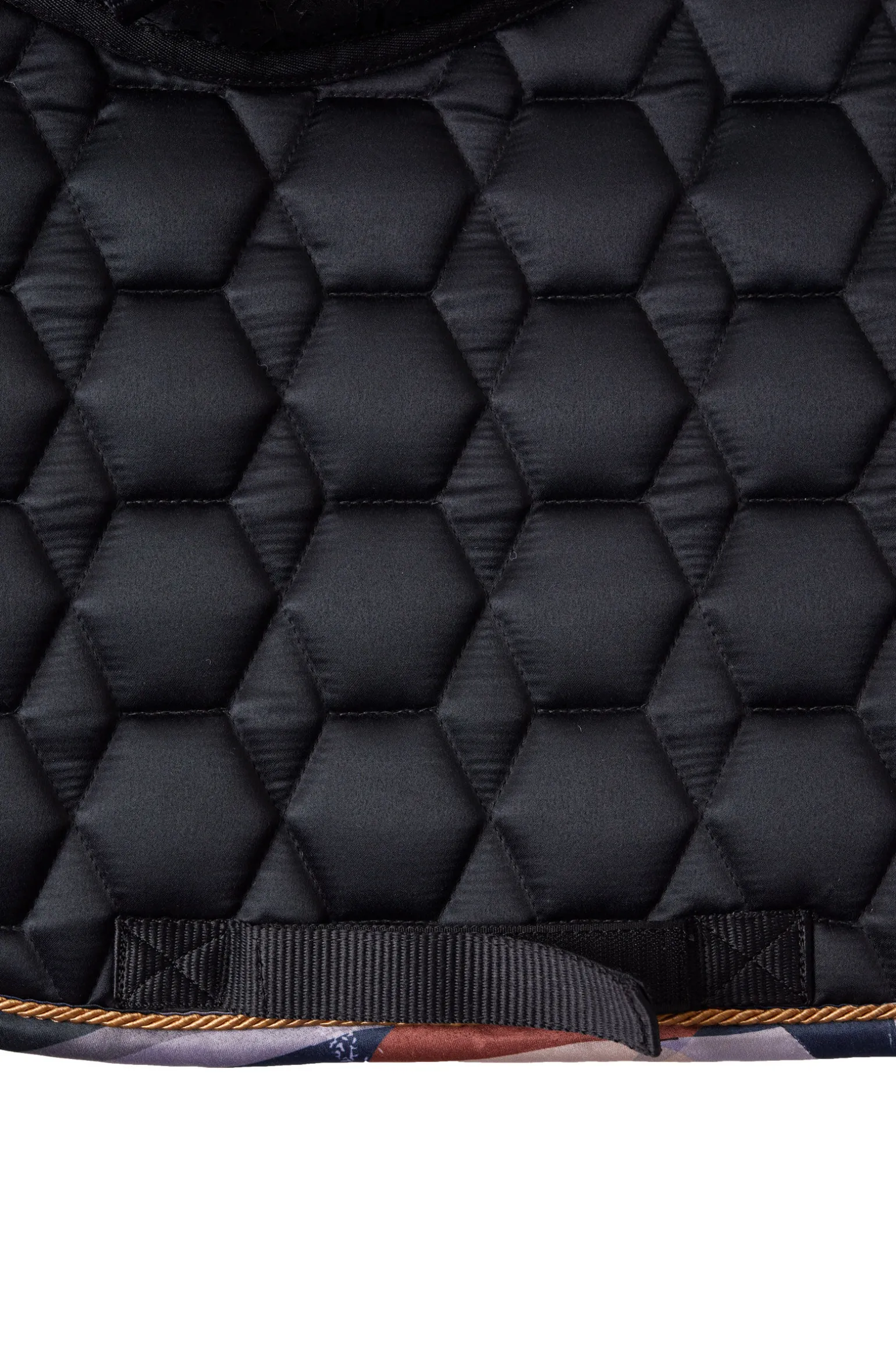 Sjabraken kommer i et sateng-lignende materiale som gir et elegant preg på hesteutstyret ditt. Det fôrede salromådet er forbedret med anti-skli silikontrykk, noe som gir en trygg og stabil passform. De justerbare gjordfestene og de lange salfestene gir et justerbart og trygt feste til salen. Det vatterte mønsteret gir et klassisk utseende, mens den fukttransporterende innsiden holder hesten din tørr og komfortabel. Med kontrastkant og Horze-logo viser denne sjabraken at den fokuserer på detaljer. Få en bedre rideopplevelse med Horze Terrazzo allroundsjabrak, en nødvendighet for alle ryttere.