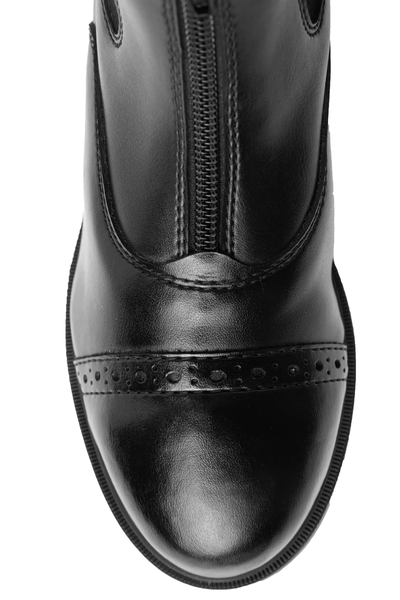 Disse jodhpurskoene har utseendet og følelsen til tradisjonelle stallsko, men har en rask glidelås foran, noe som gjør det enkelt for barn å ta dem på seg.Det gode håndverket kombinerer kvalitet og en klassisk stil.Det myke, syntetiske lærlignende materialet er lett å ta vare på, og ser alltid nytt ut.Fuskepels holder føttene til den lille rytteren varme.Disse skoene kommer til en rimelig pris for bruk i både stallen og til ridning, med en kvalitet som vil vare.