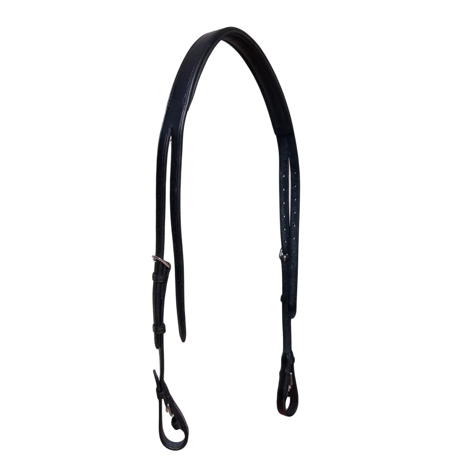 Halsreim som kombihodelaget bygges på.Med metallbeslag og lær i høy kvalitet.Nakkestykke til kombihodelag. Relaterte varer: 10265 – nesereim eller 10266 – nesereim. 10534 – pannebånd, valgfritt.