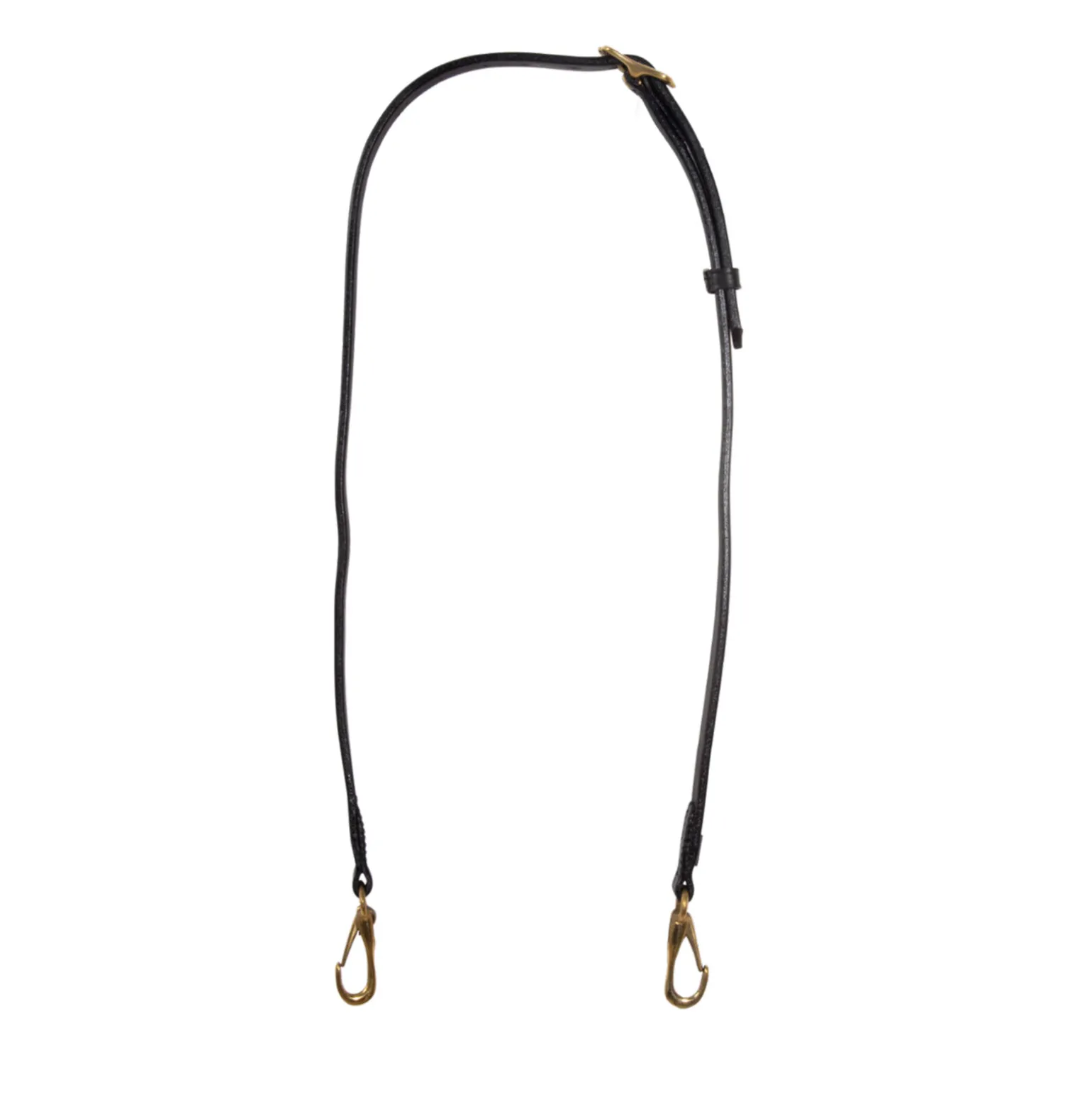 Svart lær av svært god kvalitet. Enkelt hodelag med spenner av krom. Uten pannereim, med hurtigkroker til bittet.
