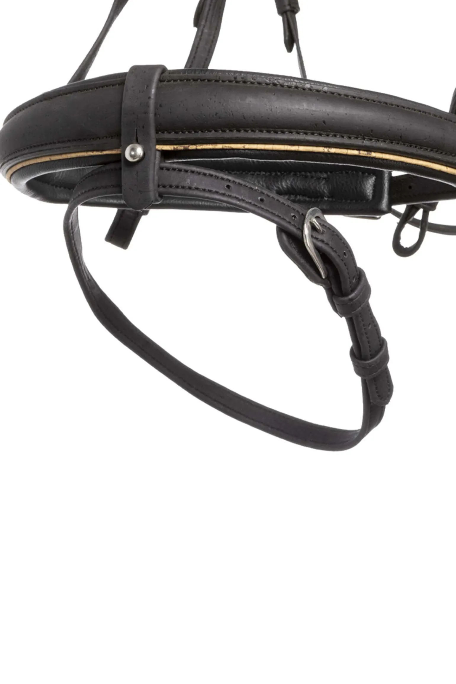 Produkter laget av kork har lenge vært tilgjengelig som et bærekraftig alternativ til lær i verden utenfor hestesporten.I hestesporten er det dog ikke så veldig utberedt.Vi ønsker å forandre dette fra nå.Som et hestesportselskap vil vi nå tilby vegansk rideutstyr laget av kork.Vi ønsker å gi et bærekraftig fotspor og tilby veganske hesteelskere et godt alternativ til lær.Produktene har blitt utviklet og grundig testet i omtrent to år, konstant modifisert og tilpasset.Resultatet er vår bærekraftige og veganske kolleksjon «Cortica», bestående av hodelag, tøyler, chaps og jodhpursko.Hodelaget «Cortica» har engelsk nesereim med flash, og et anatomisk nakkestykke.Neserima er mykt fôret med uekte lær.Hodelaget kan justere på begge sider, og nesereimen kan tas vekk.Det glitrende pannebåndet samt den smale beige stripen langs nesereimen er et flott blikkfang.Kork-materiale – det veganske læretBærekraftig og veganskSom barken til korkeiken er kork et fornybart, biologisk nedbrytbart råmateriale.Korkeiken kan vokse seg over 300 år gammel og plukkes for hånd omtrent hvert tolvte år gjennom sitt liv.Dette gjør treet mer motstandsdyktig og skaper varige korkeikskoger som hindrer jorderosjon, binder store mengder CO竄ært viktig økosystem for mange sjeldne dyr.Holdbar og unikStoff i korkmateriale, også kalt kork-lær er svært slitesterkt, holdbart og vannavvisende.Korkplatene på barken er bundet med organisk lim for å lage større plater, og kuttes tynt.Deretter settes de sammen som et puslespill og påføres et materiale, før de forsegles og til slutt kan viderebearbeides som korkstoff.Akkurat som lær er hvert korkstoff et helt unikt stykke.