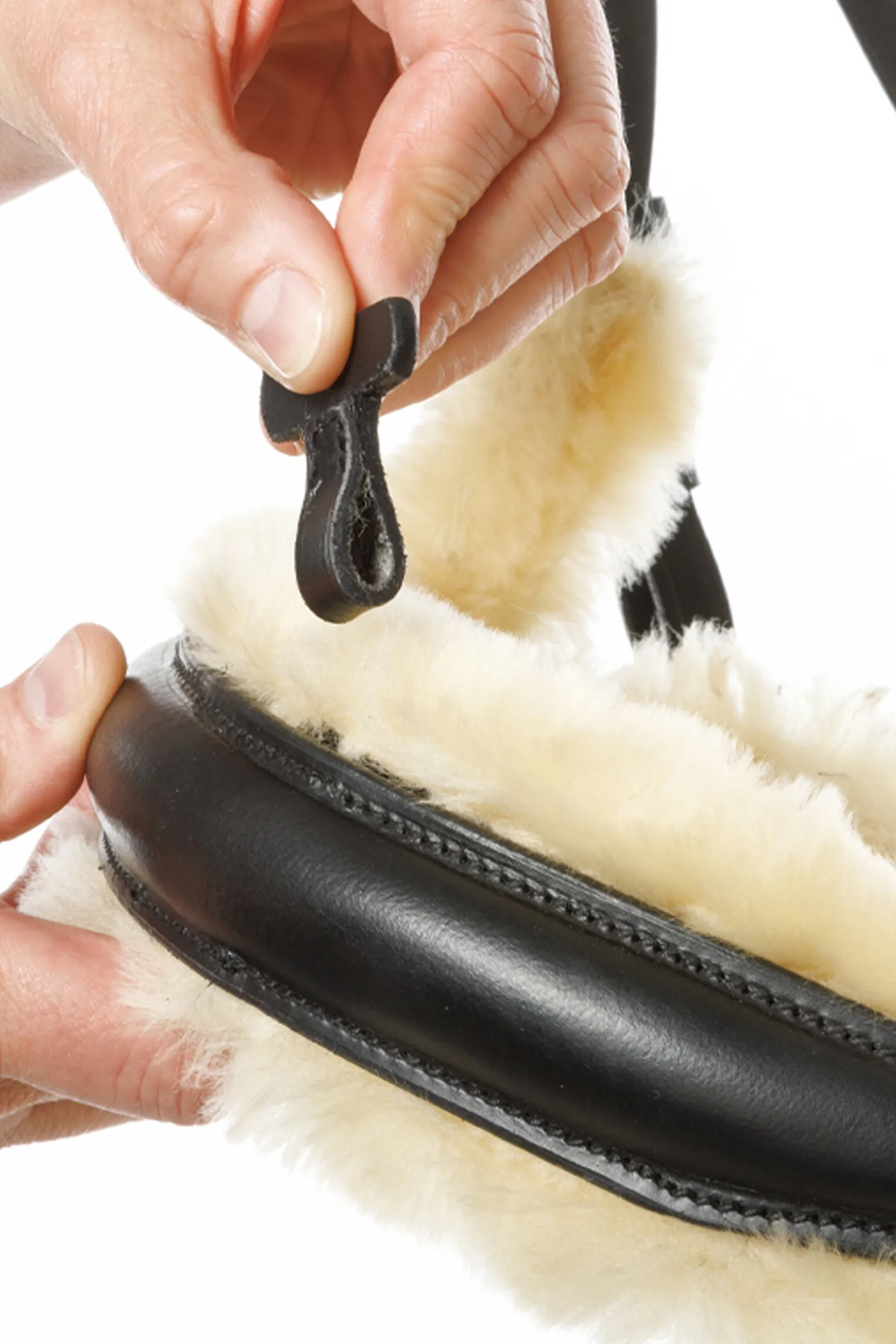 - Removable lambskin with velcro at head piece and noseband, elongated at the sides