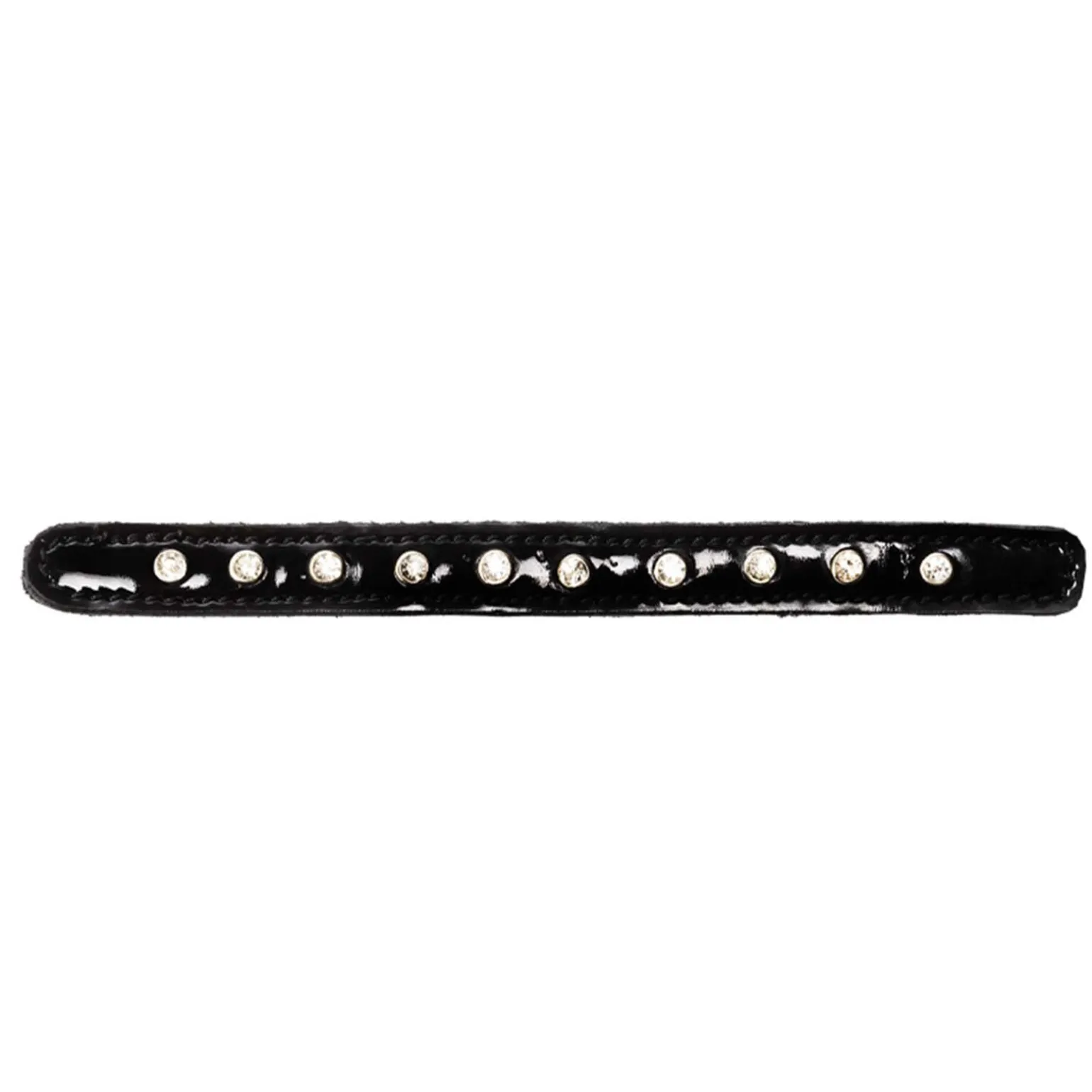 Dekorasjonsdel med borrelåsfester til fortøyet «Leyla», i svart lakk med hvite pyntesteiner.