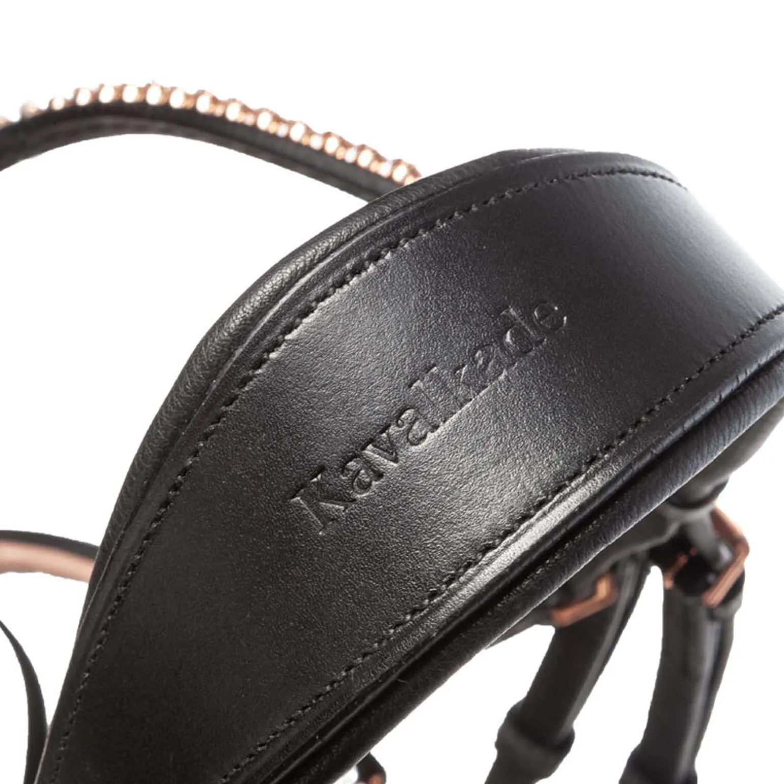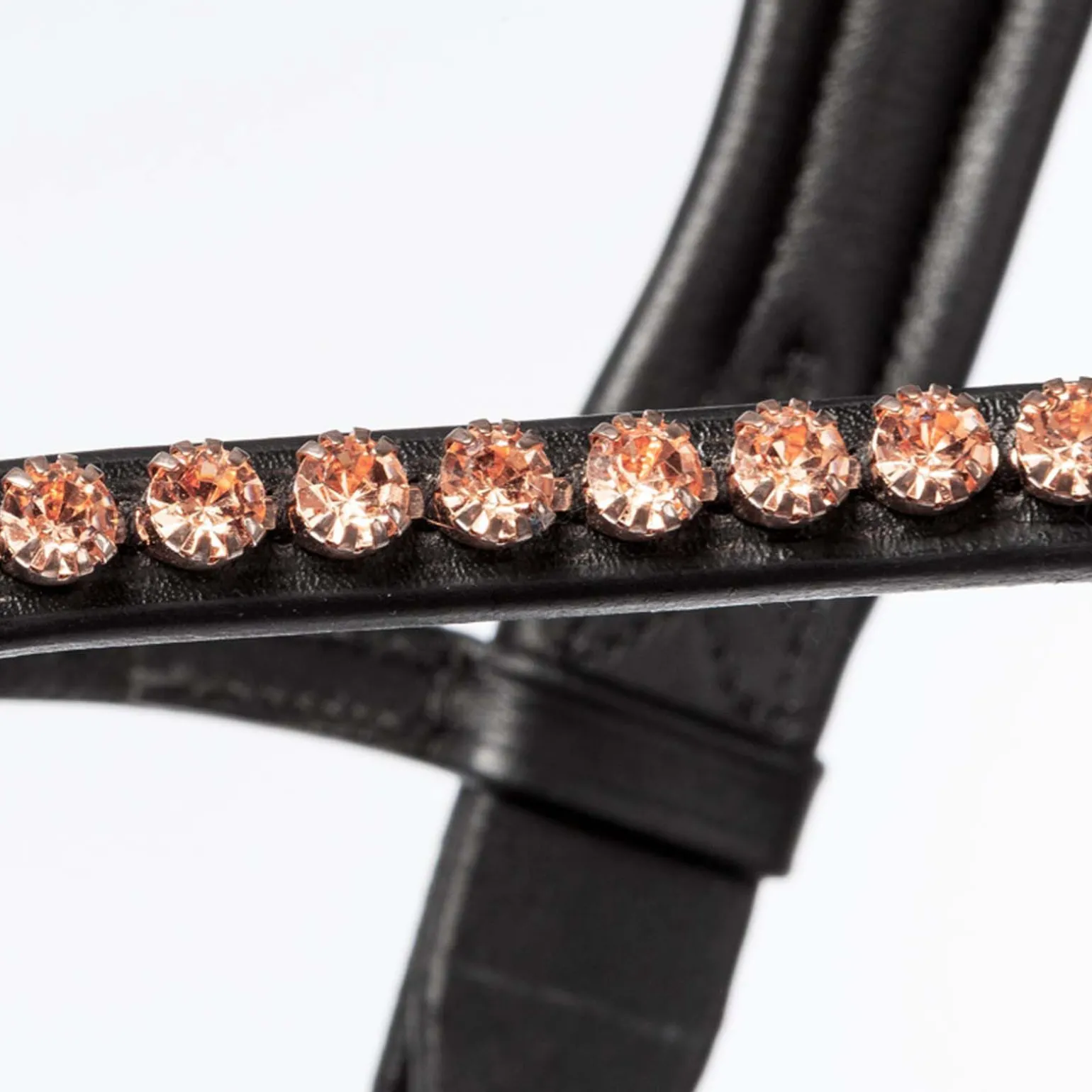 - Svensk kombinasjonsnesereim, justerbar på begge sider. Normalt buet pannebånd med rosa pyntesteiner. Anatomisk, ekstra bred nesereim. Nesereimen er mykt fôret, konisk og i rosé. Avtakbar flash-nesereim. Gummidekte tøyler med stoppere (16mm).