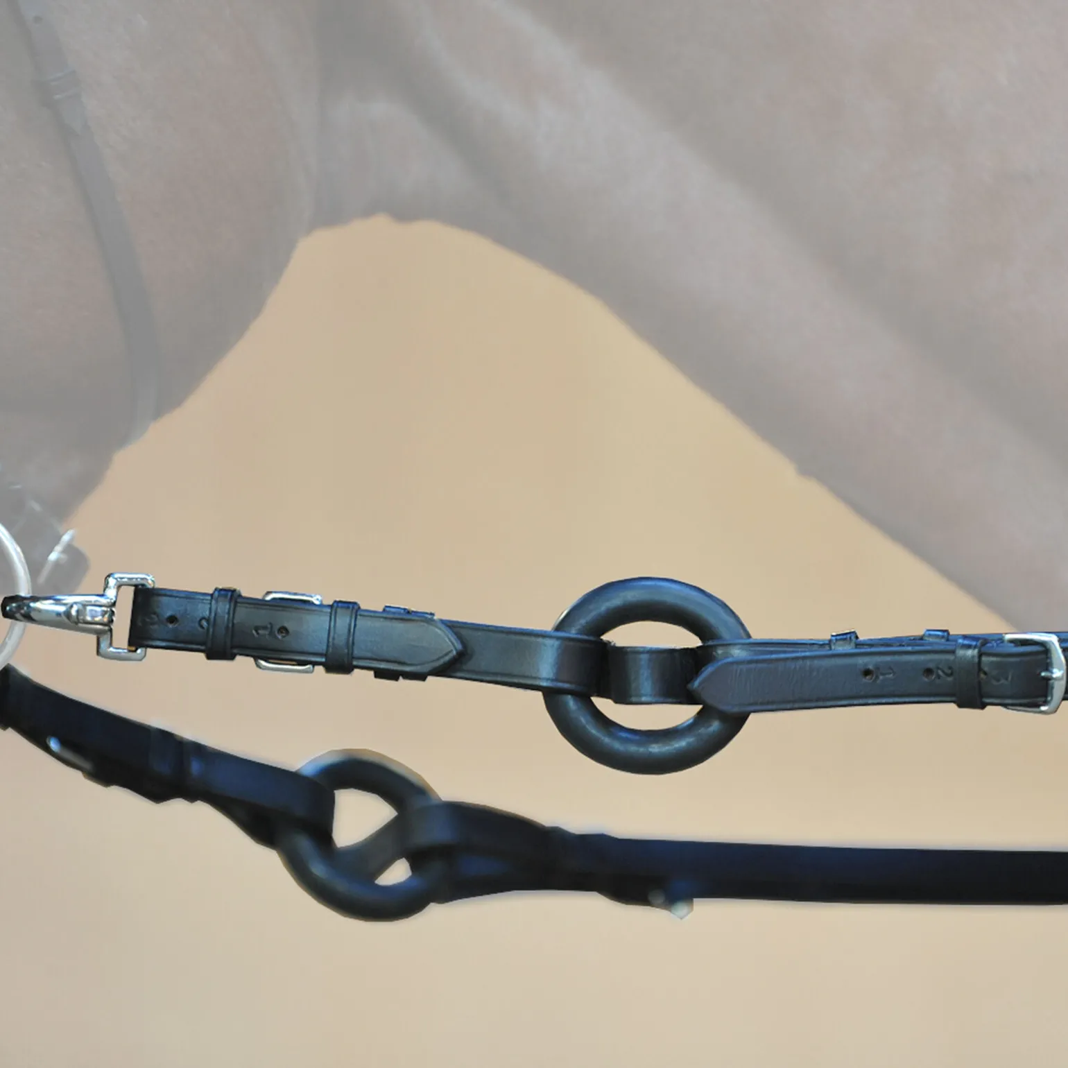 Hjelpetøyler med elastisk gummiring som gir en mykere følelse i hestens munn. Den elastiske ringen gir en liten utvidelsessone, som lar hesten få litt mer plass foran. Hjelpetøylene har riktig lengde når hesten har nesen i vertikal posisjon eller like før, så fort den bærer nesen på nivå med skulderleddet. Med hjelpetøyler blir bevegelsene til hestens hals sideveis redusert. Dette hjelpemiddelet er fordelaktig etter som det gir støtte til siden, slik at hesten ikke skyter ut skulderen like lett (man unngår knekk i halsen) eller man unngår forskyvninger i kjeven.