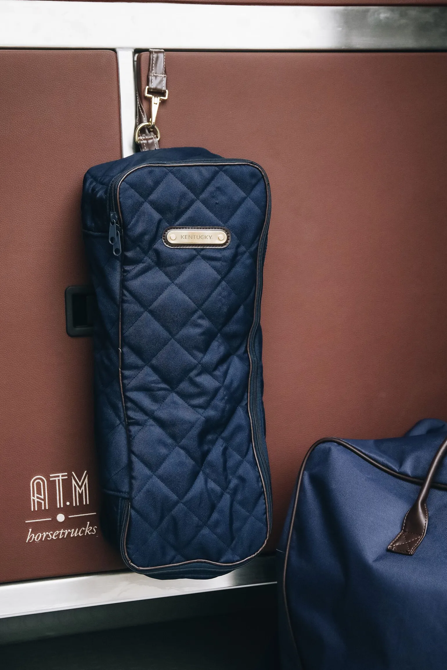 Kentucky Horseware hodelagpose gir beskyttelse til hodelagene dine under transport, på stevne og hjemme. Hodelagsposen har kunstig kaninskinn på innsiden for å inngå riper på læret. Den kommer med en krok på innsiden slik at du enkelt fester hodelaget. Navnelappen foran kan snus og gjøres personlig. Hodelagsposen kan festes hvor som helst takket være stroppen på toppen. Den har samme diamantvattering som vårt stallsett har (boksgardin, dørgardin og hodebeskyttelse) og våre dekken! Derfor vil hodelagsposen sette prikken over I’en på Kentucky-stevneutseende. Maskinvaskes på 30°. Skal ikke tørketromles.
