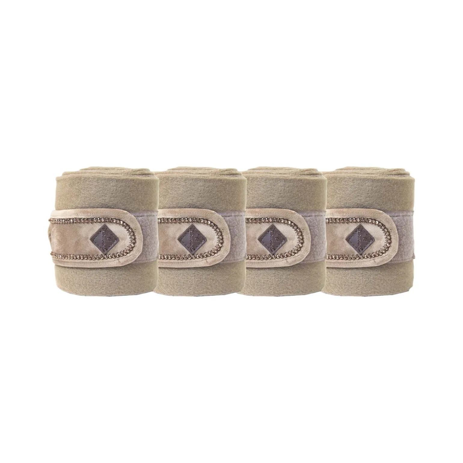 Tren med stil i våre Pearls Polar Fleece bandasjerIdeell til den daglige treningen med din hest, da det gir optimal støtte til senene under trening.Perlemodellen vil tiltrekke blikk, og vil passe perfekt med våre sjabraker med perler.Polarfleecebandasjene i 280g/m² kommer med en sterk borrelås og er utviklet i fleece av høy kvalitet for å unngå at den nupper seg.Polarfleece-bandasjene er 325×12 cm, og selges i sett med fire.Bandasjene kan maskinvaskes på 30 ° i vaskepose. Skal ikke tørketromles.Perlene er ingen risiko for hesten din under trening.