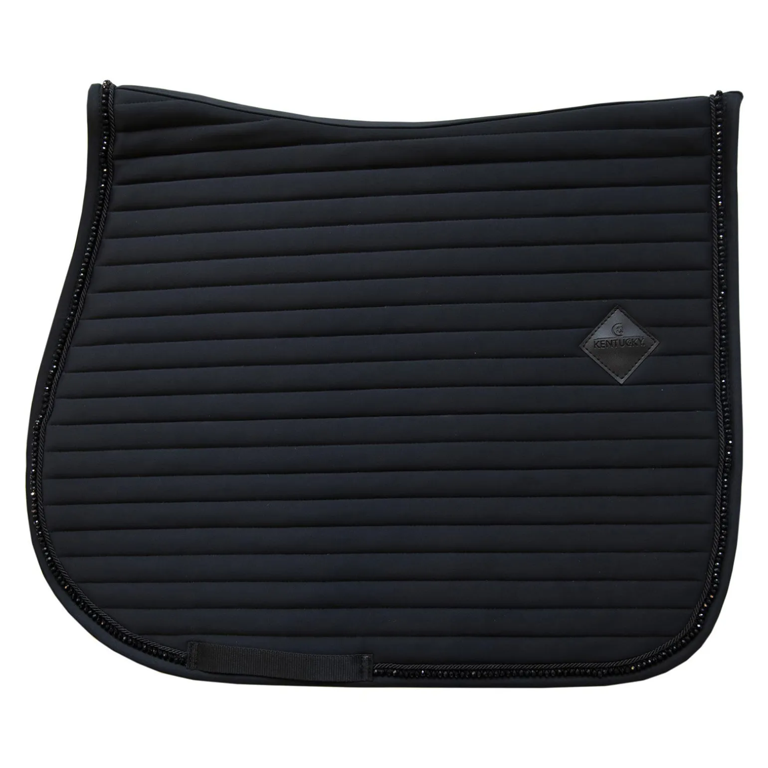 Our Saddle Pad Pearls jumping provides excellent cushioning between the horse窶冱 back and the saddle while protecting against friction. This saddle pad has a unique horizontal quilting and is made out of a breathable material (43% Nylon, 43% Polyester and 14% Spandex). The stunning piping made out of pearls is a real eye-catcher! This saddle pad in combination with one of our Fly Veils stone & pearl (long or Wellington) or our Fly Veil Wellington Glitter is just drop-dead-gorgeous! The saddle pad has no annoying straps to attach to the saddle, only a nylon strap for the girth. The saddle pad pearls features a subtle leather logo in the same colour as the saddle pad, whilst still offering enough room to embroider the saddle pad if needed. The saddle pad is machine washable at 30° in a washing bag, no dryer.